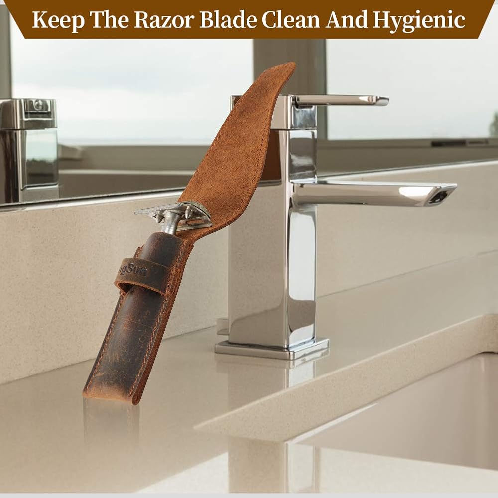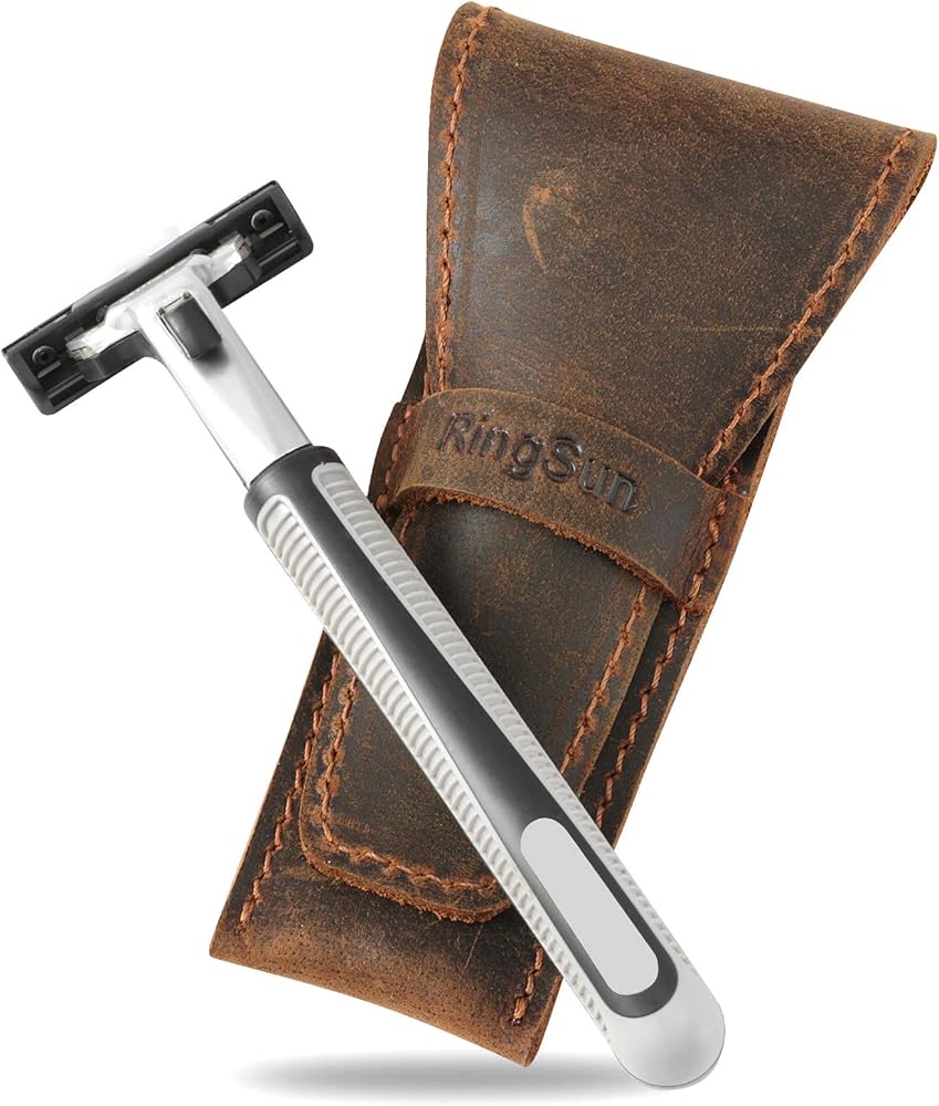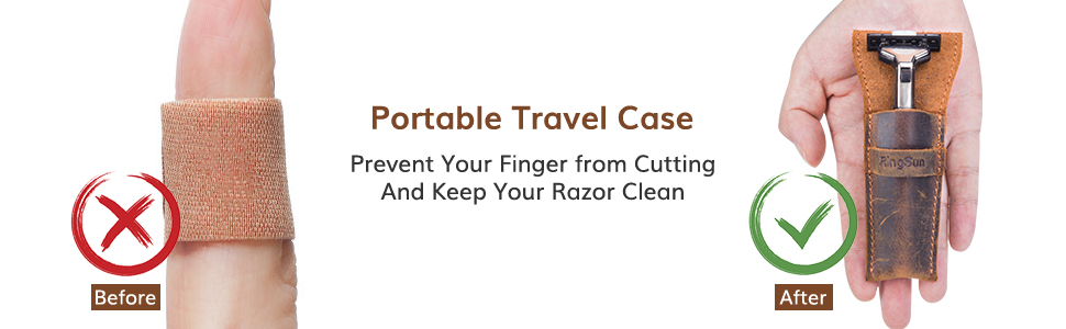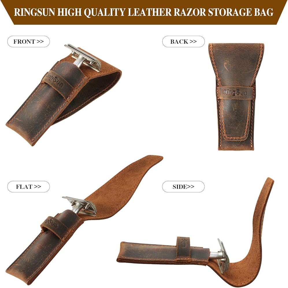 RingSun Safety Razor Case, Leather Razor Travel Case, Razor Cover Straight Safety Razor Case for Double Edge