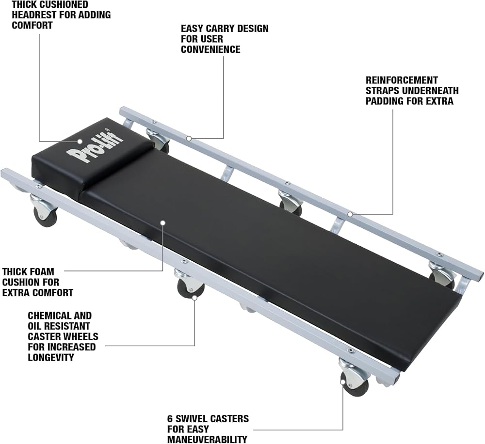 The Pro-Lift traditional 6 caster creeper is the low profile full length creeper that belongs in every garage.