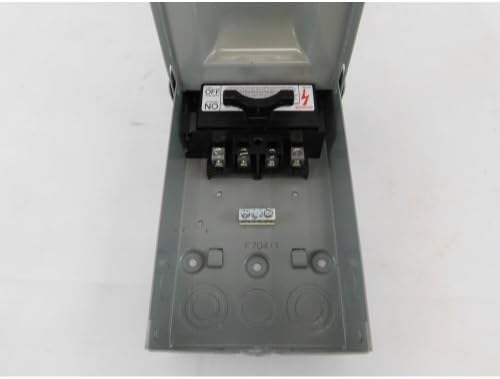 Single phase, 2 pole, 2 wire, 240 Volts AC. Rated 3 HP at 120 Volts, 10 HP at 240 Volts. For bottom entry and exit only. Heavy duty, high strength enclosure with welded and riveted construction. Swing-up cover remains in place when in open position, and includes provision for padlocking. 10,000 AIR. When pullout is in Off position, protective shield can be removed for access to fuses. No.GB4 ground bar and No.96-3258-4 pullout head replacement sold separately. #14-3 AWG wire range. U.L. Listed file No.E5239.