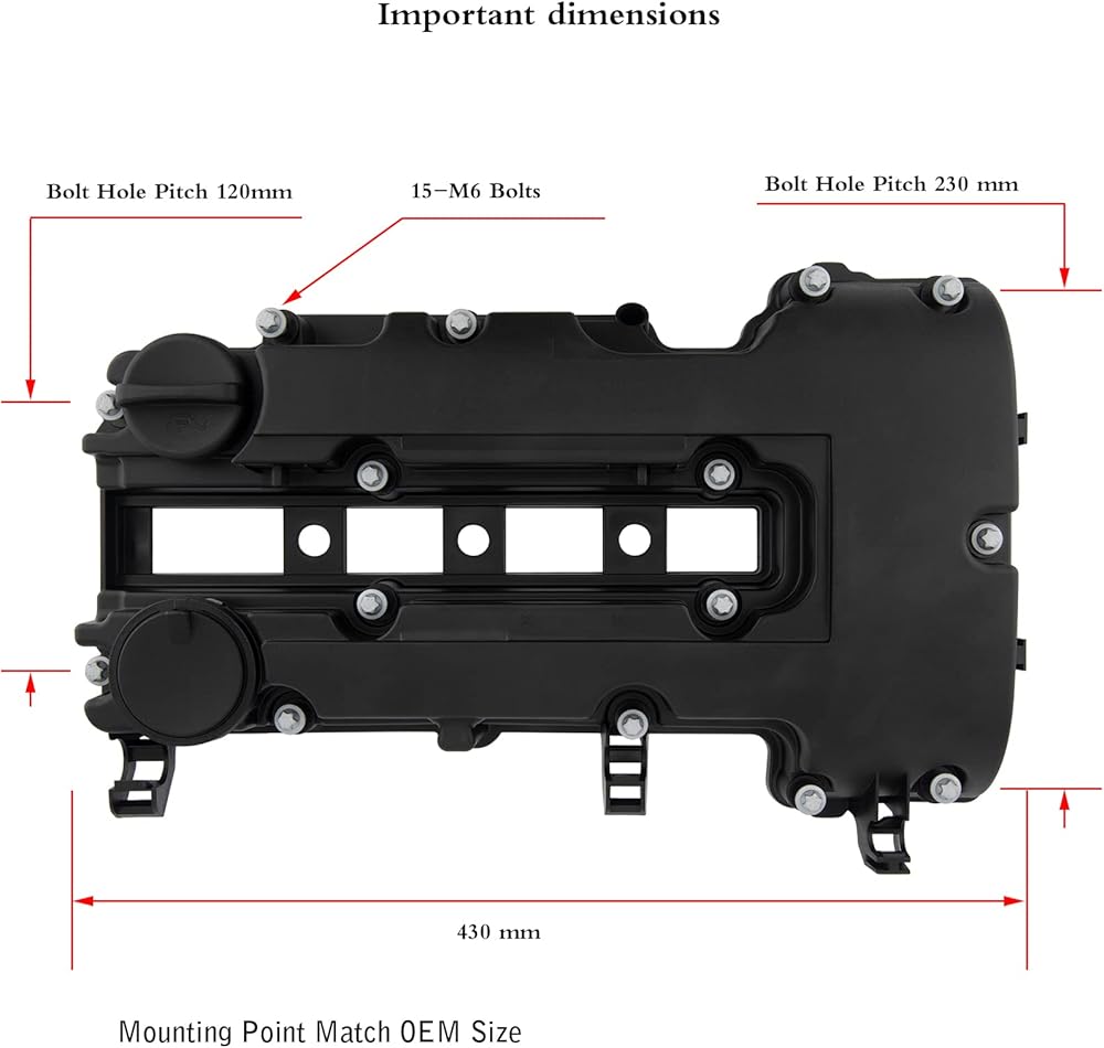 【Valve Cover Assembly Includes】 1 x Valve Cover Assy(w/PCV Valve) + 1 x Valve Cover Gasket +1 xValve Cover Oil Filler Cap & set of Valve Cover Mounting Bolts (New: A brand-new, unused, unopened, undamaged item in its original packaging)