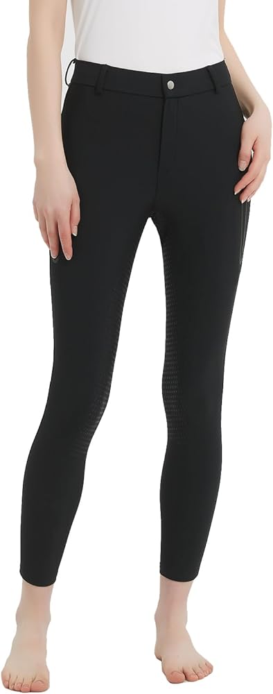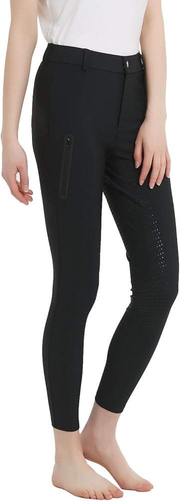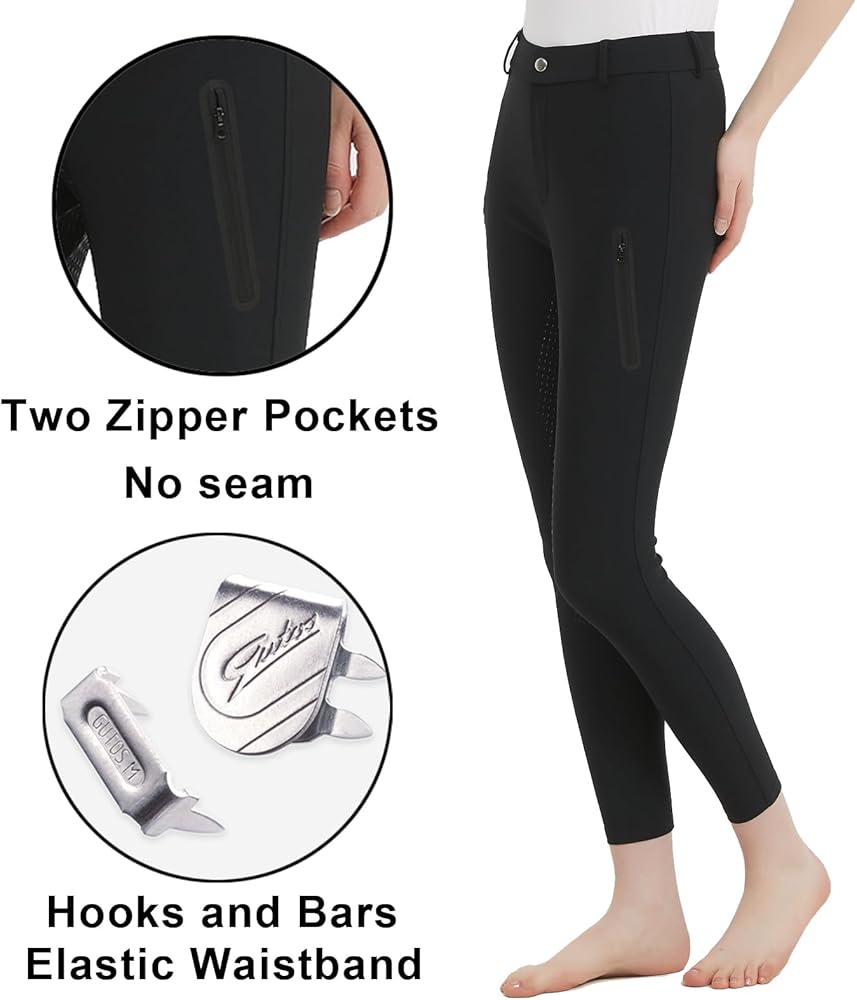 جيبان بسحاب: تحتوي سراويل ركوب الخيل النسائية هذه على جيبين جانبيين مريحين بسحاب مما يسمح لك بتخزين هاتفك أو بعض الأغراض الشخصية أثناء الركوب أو الركوب.