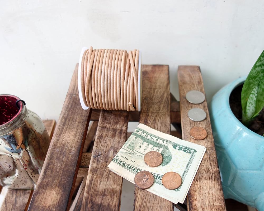 كوردز كرافت® | سلك جلدي مستدير طبيعي 2 مم لصنع المجوهرات والأساور والقلادات DIY حرفية خرز عمل Kumihimo تجديل يلتف الحرف اليدوية ومشروعات الهوايات | لفة 20 مترا