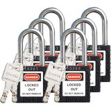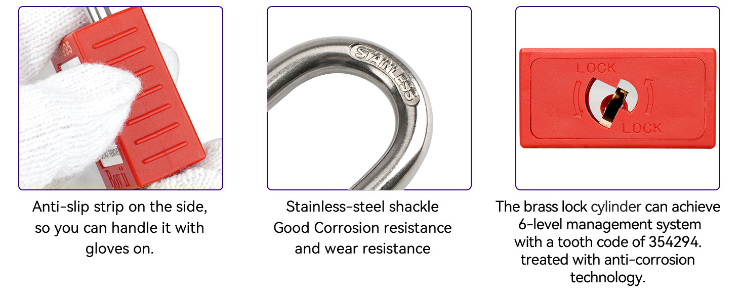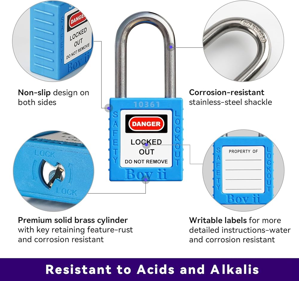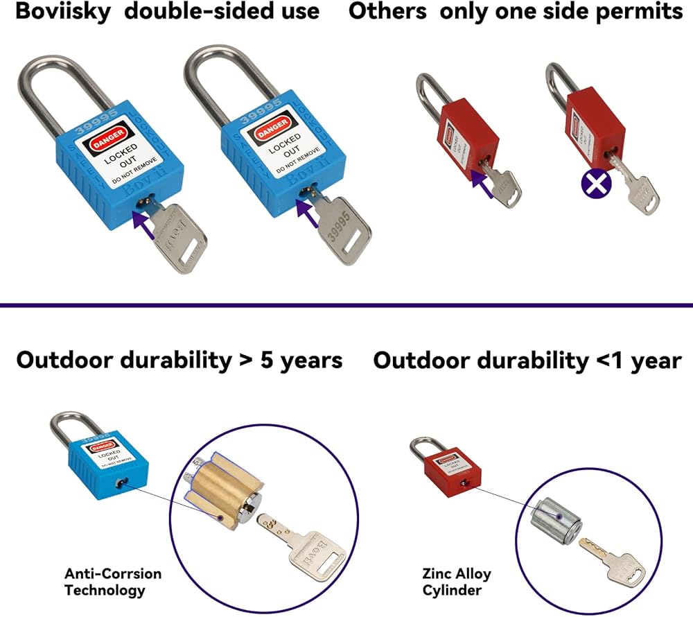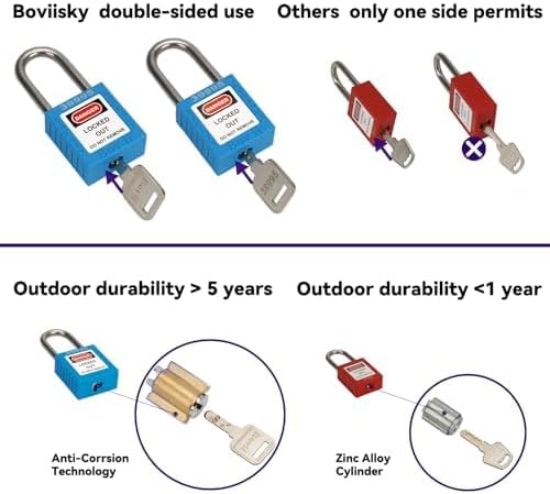 جودة عالية ومتانة - يتميز قفل قفل Boviisky بقلب نحاسي فريد من نوعه، وغطاء من النايلون المقوى 66، وشعاع قفل من الفولاذ المقاوم للصدأ 304، وشرائط غير قابلة للانزلاق، وورق ملصق AVY قابل للكتابة، مما يضمن أنه يمكنه تحمل الاستخدام الخارجي لأكثر من 5 سنوات.