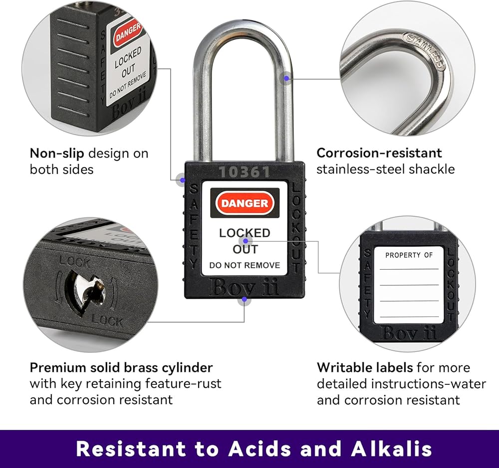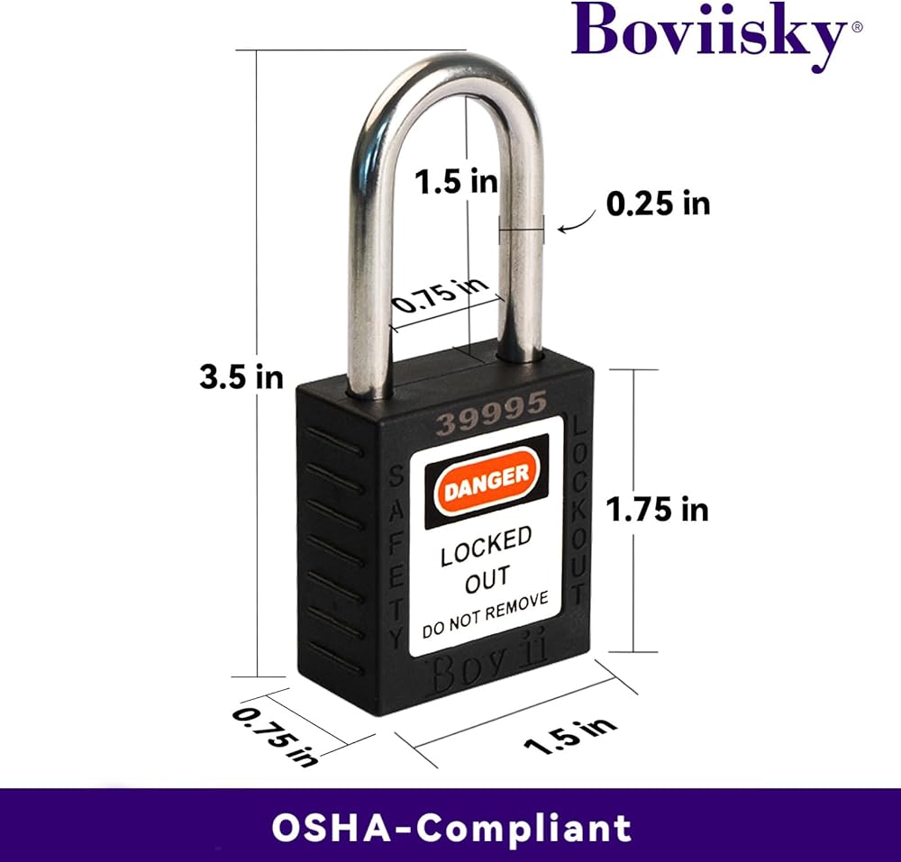 جودة عالية ومتانة - يتميز قفل قفل Boviisky بقلب نحاسي فريد من نوعه، وغطاء من النايلون المقوى 66، وشعاع قفل من الفولاذ المقاوم للصدأ 304، وشرائط غير قابلة للانزلاق، وورق ملصق AVY قابل للكتابة، مما يضمن أنه يمكنه تحمل الاستخدام الخارجي لأكثر من 5 سنوات.