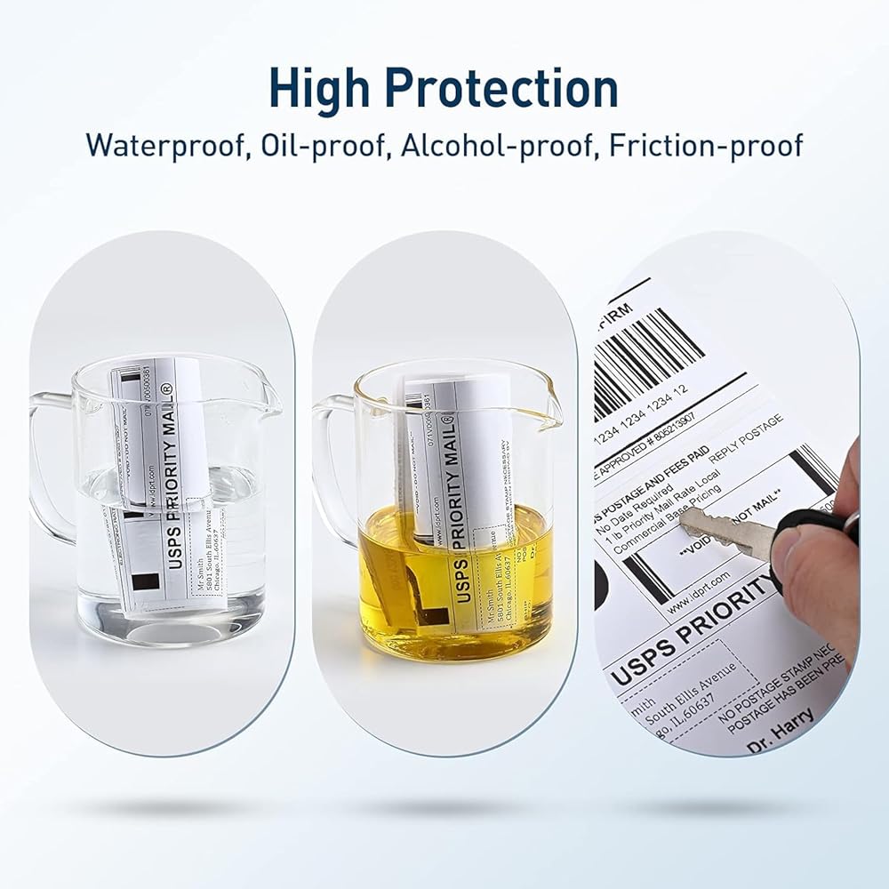 【لاصق وحماية ممتازين】تتميز ملصقات الملصقات بمادة لاصقة وحماية ممتازة. تحتوي على مادة لاصقة قوية بحيث يمكن استخدامها في التعبئة. يمكن أن يمنع بشكل فعال تلف الملصقات البريدية بالزيت والكحول والاحتكاك. سوف يحمي محتوى ملصقات الملصقات، ويجعل ورق الملصق مناسبًا لمجموعة متنوعة من البيئات.