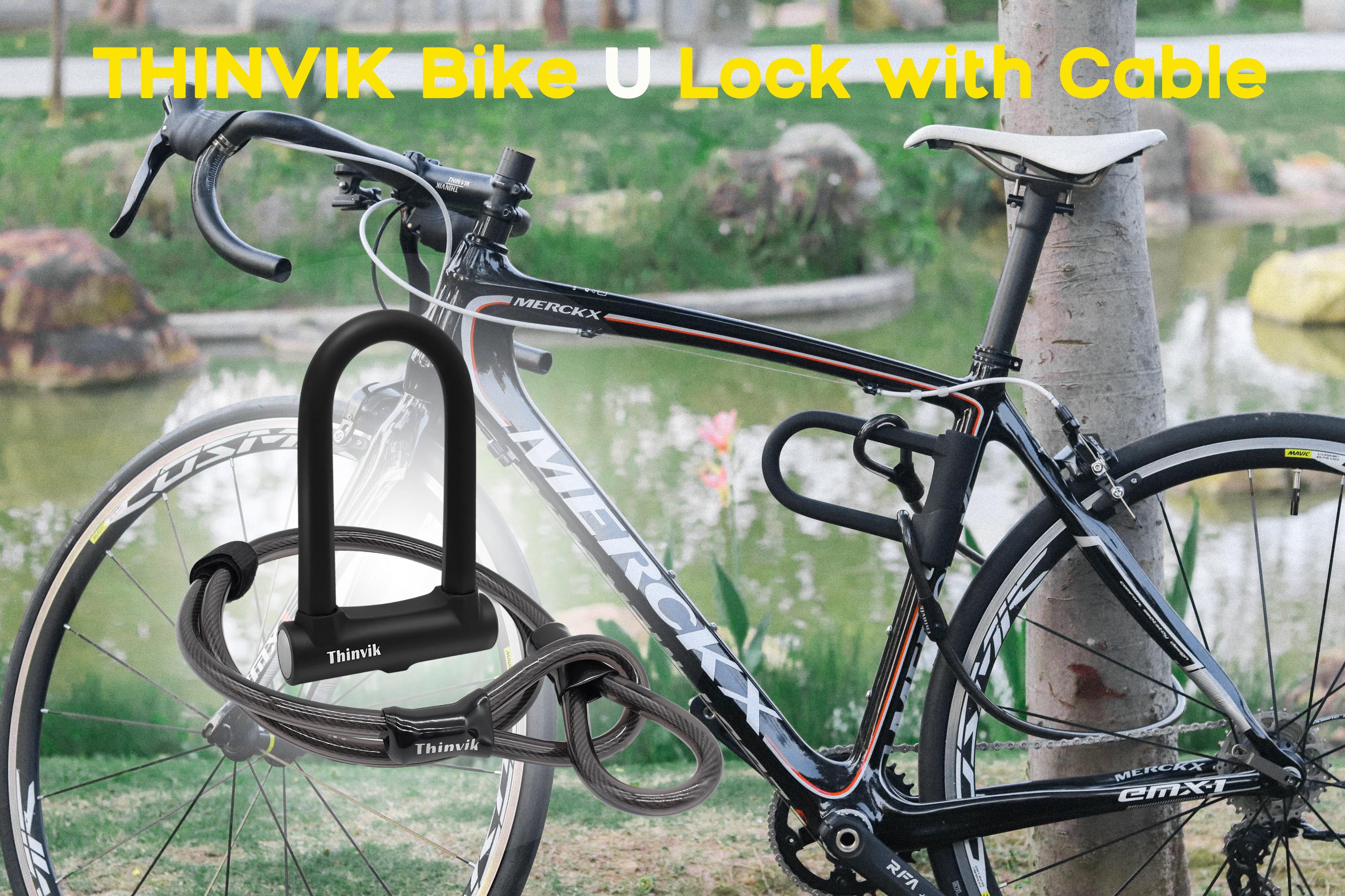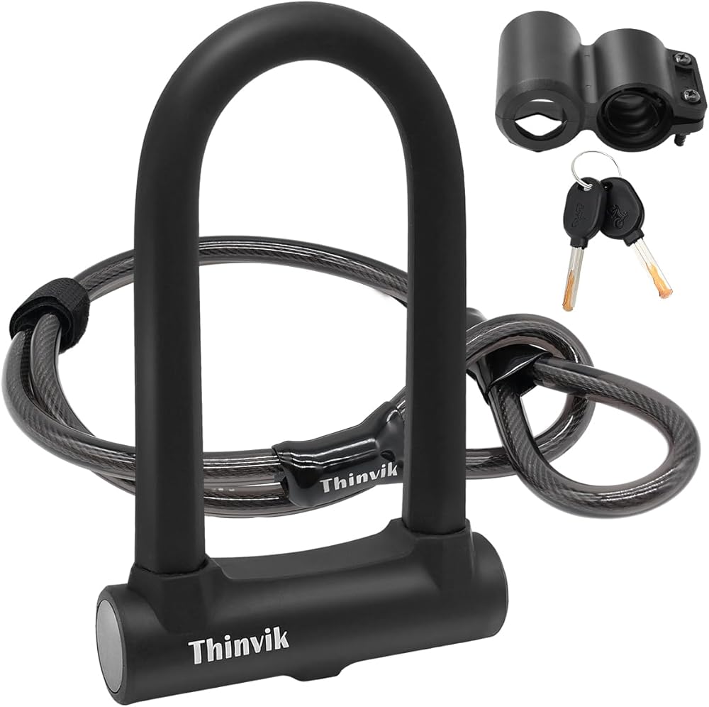 Thinvik Bike U-Locks شديدة التحمل مضادة للسرقة 12 مم × 1.2 م (48 بوصة) كابل فولاذي 18 مم تكبل. دراجة على شكل حرف U مع دعامة تثبيت أداة مضادة للسرقة للطرق والجبال الكهربائية والدراجة القابلة للطي - تكبل 18 مم