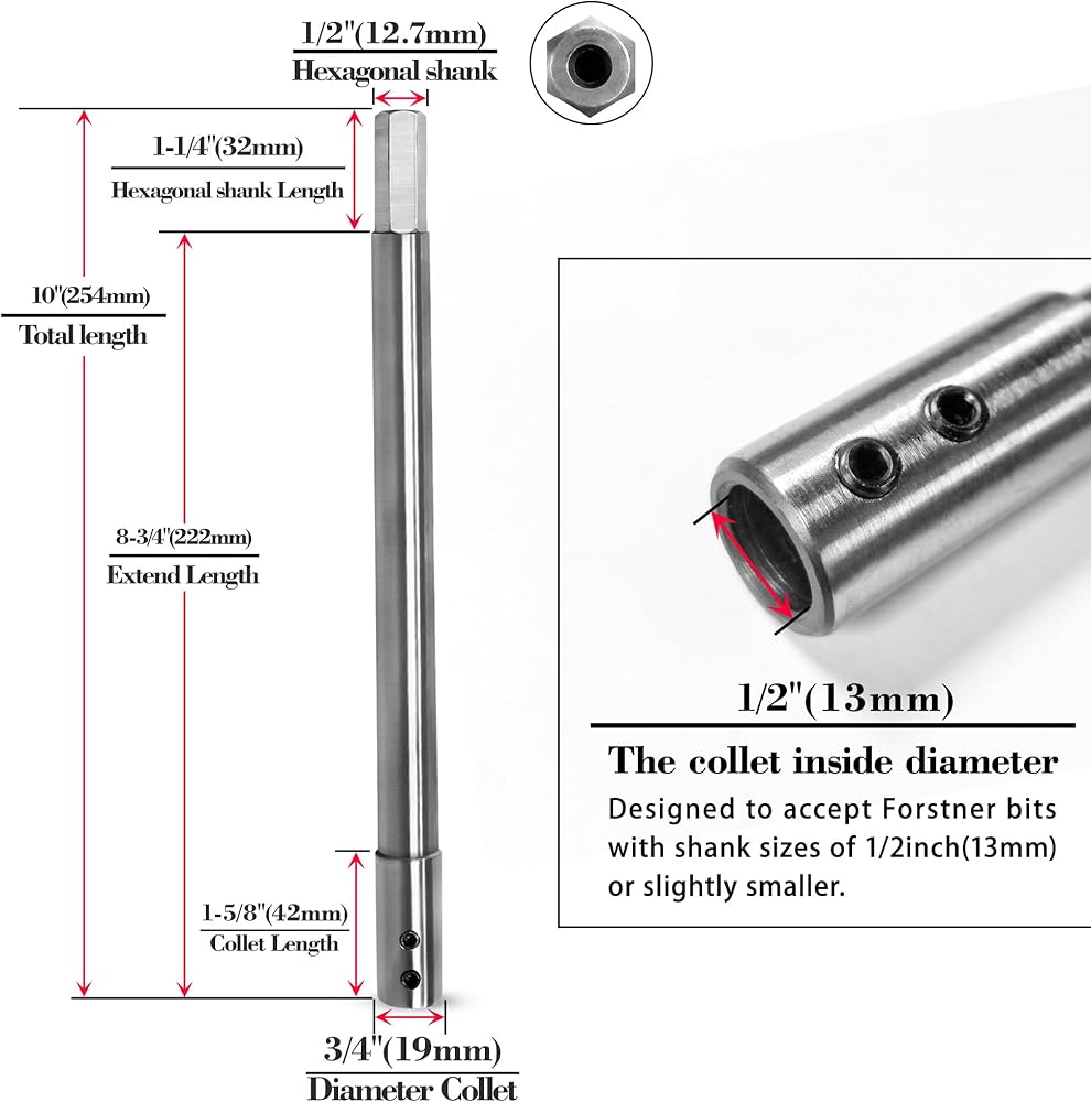👷Extends any Auger Drill Bit shank an additional 8-3/4 inches, Helps you use standard Auger Drill Bits drilling for deep hole turning projects;