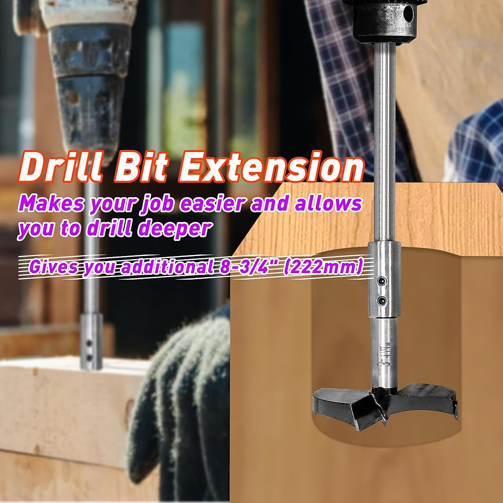 1)The auger drill bit extension gives you additional 8-3/4 inches of reach to bore deeper into your projects.