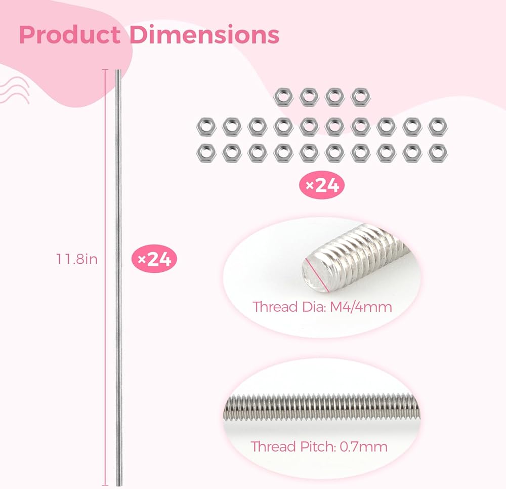 【مجموعة أدوات يدوية شاملة】 تتضمن عبوتنا 24 قطعة من القضبان الملولبة M4 مقاس 11.8 بوصة و24 قطعة من صواميل سداسية M4، بإجمالي 48 قطعة. سيكون لديك كل ما تحتاجه لإكمال مشاريعك، سواء كانت مخصصة لعشاق الأعمال اليدوية أو التصنيع الصناعي. لا مزيد من الركض إلى متجر الأجهزة؛ مجموعتنا تغطي احتياجاتك