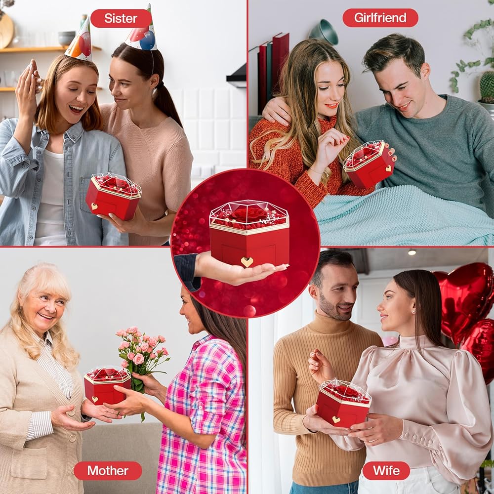 💗سحر متعدد الاستخدامات: بالإضافة إلى قيمته الرمزية، فإن صندوق الهدايا الخاص بنا بمثابة رمز متعدد الاستخدامات مناسب للنساء من جميع الأعمار. سواء كانت لصديقة أو زوجة أو أخت أو ابنة، فإن مزيج الورود الأبدية وحجرة المجوهرات يجعلها هدية متعددة الاستخدامات ومدروسة في أي مناسبة، سواء كانت عيد الميلاد أو أعياد الميلاد أو حفلات التخرج.