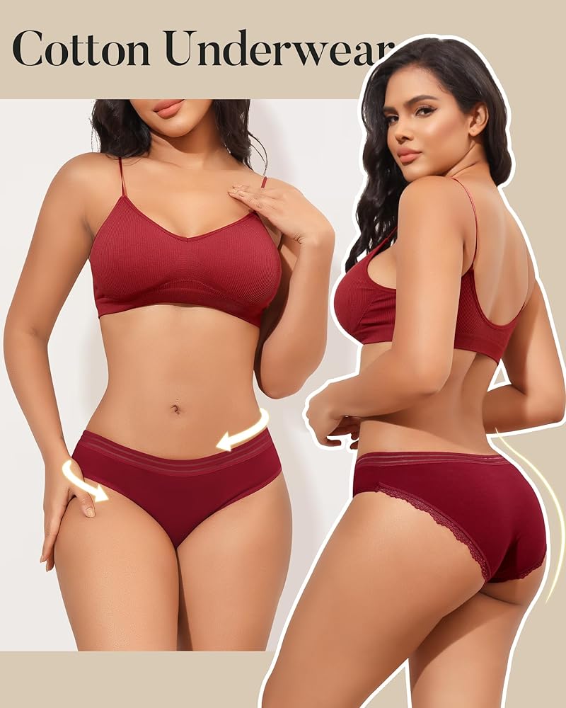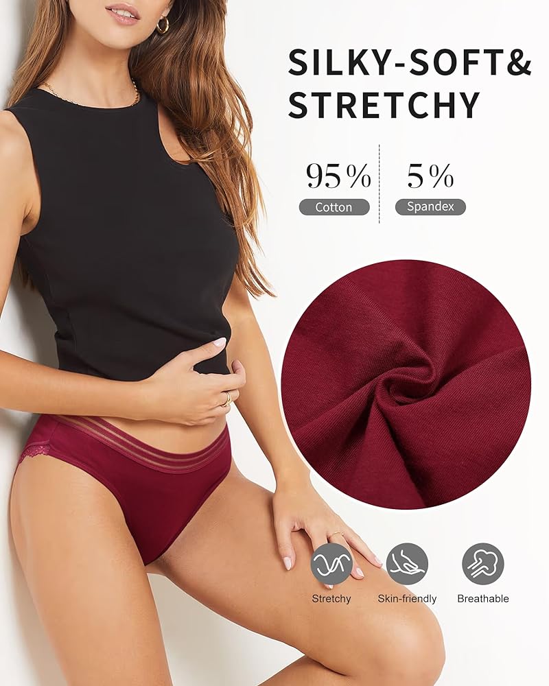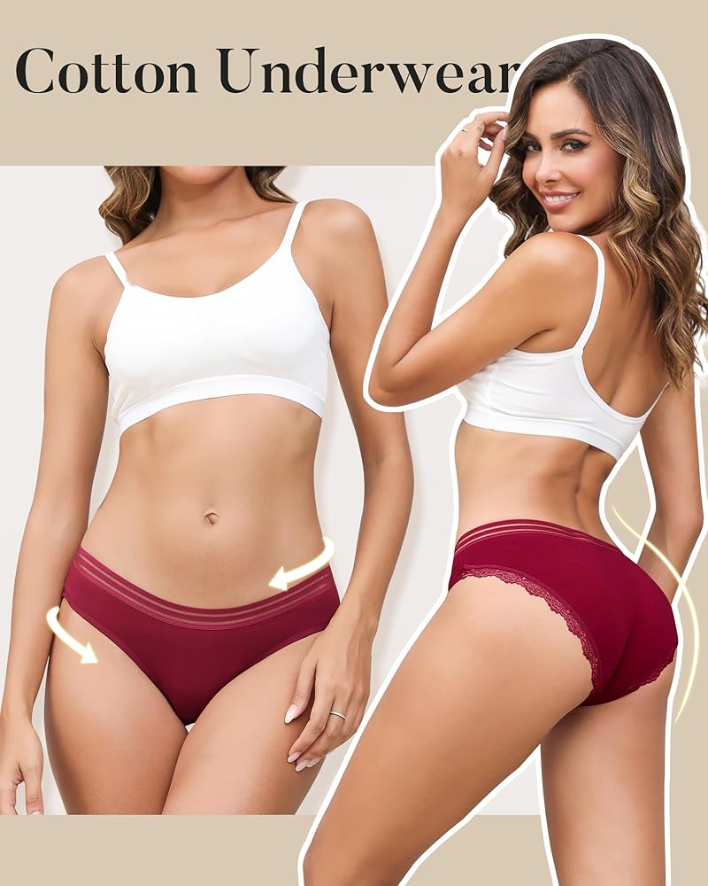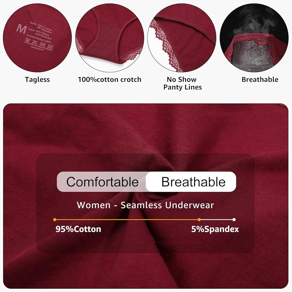 💗【نسيج عالي الجودة】-- سراويل داخلية قطنية للسيدات مصنوعة من 95% قطن و5% ألياف لدنة. نسيج ناعم مطاطي، لا يسبب تهيج الجلد ولا يتغير شكله عند الغسيل. مبطن بنسبة 104% من القطن بين الرجلين للحصول على ملاءمة أكثر راحة ومسامية ومريح للارتداء طوال اليوم دون أن يكون ضيقًا.