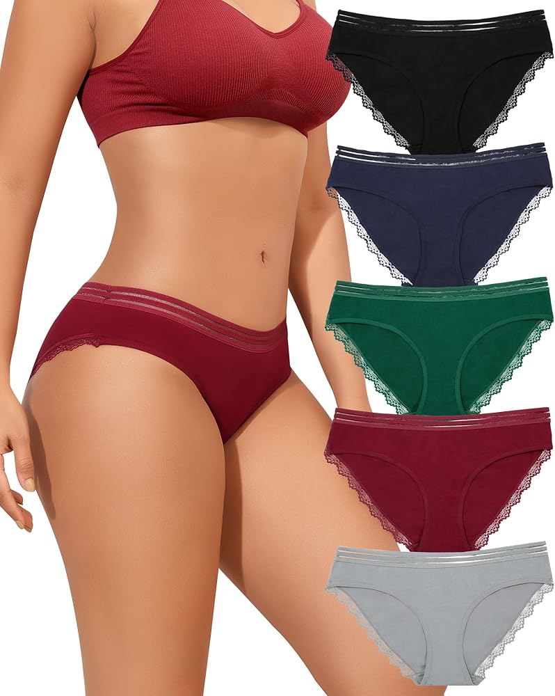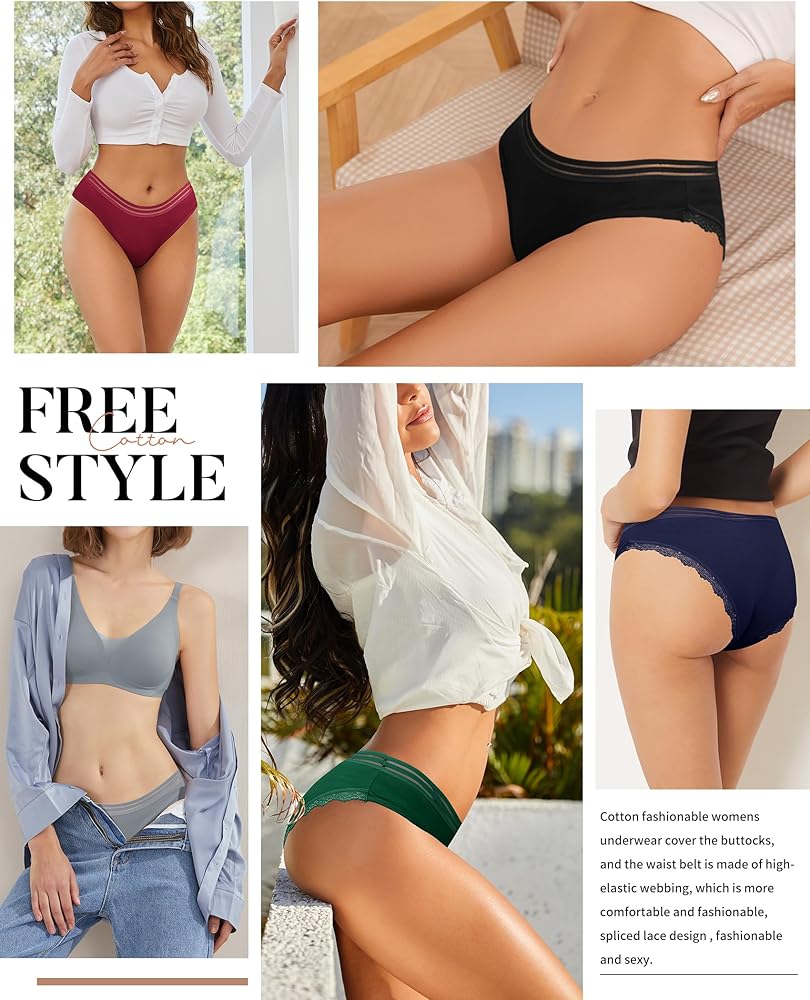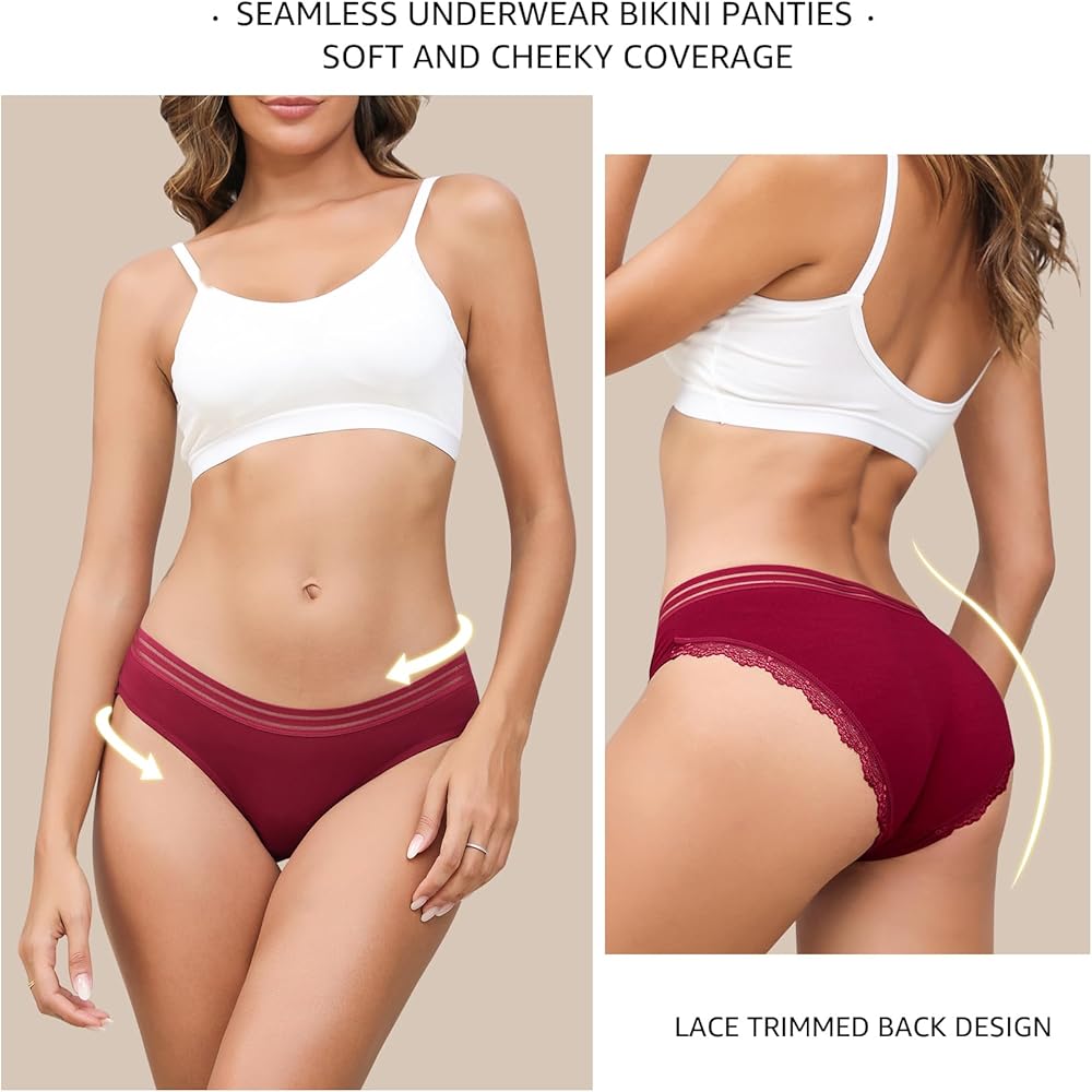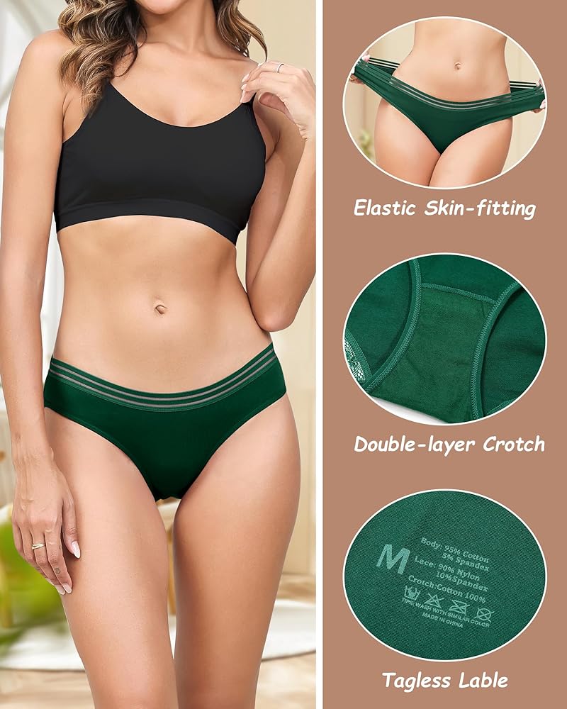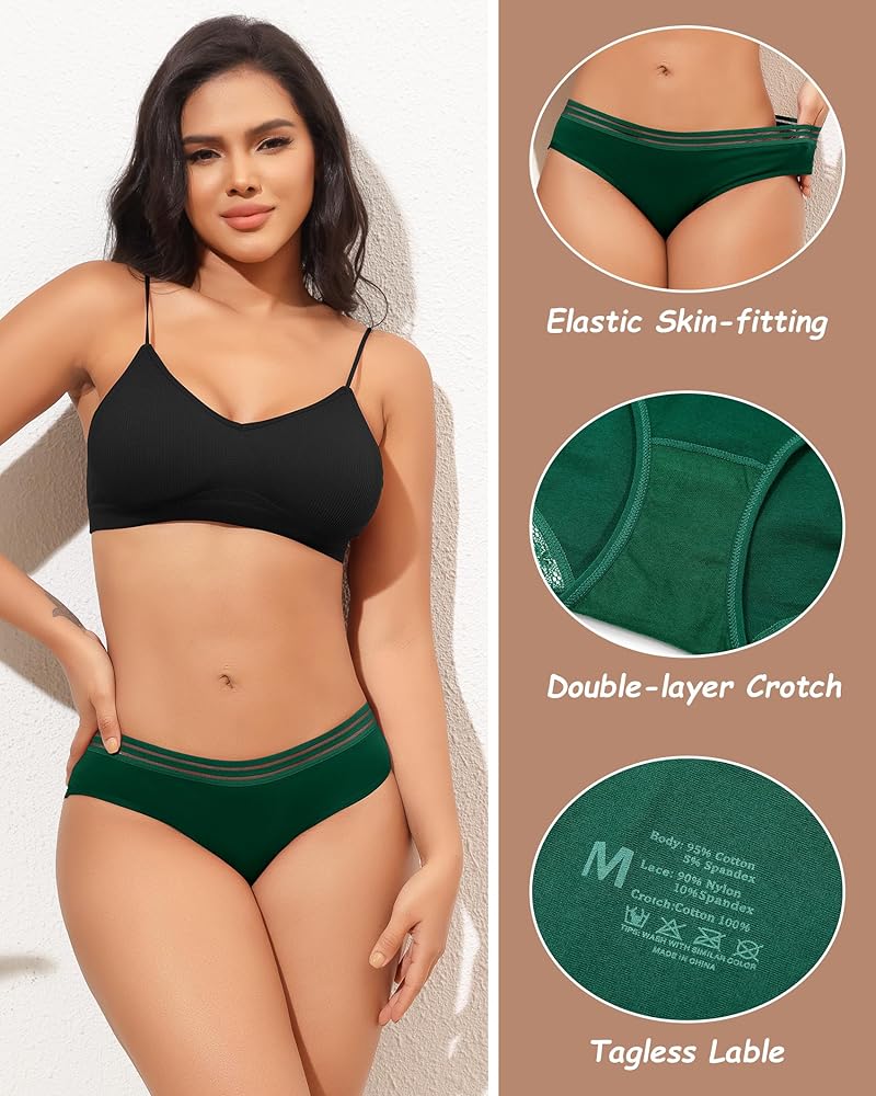 💗【نسيج عالي الجودة】-- سراويل داخلية قطنية للسيدات مصنوعة من 95% قطن و5% ألياف لدنة. نسيج ناعم مطاطي، لا يسبب تهيج الجلد ولا يتغير شكله عند الغسيل. مبطن بنسبة 104% من القطن بين الرجلين للحصول على ملاءمة أكثر راحة ومسامية ومريح للارتداء طوال اليوم دون أن يكون ضيقًا.