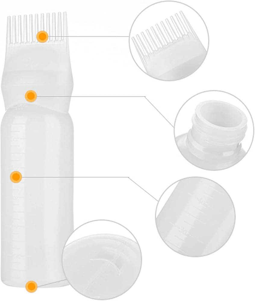 ☆【التصميم】تعتمد فرشاة توزيع زيت الشعر على تصميم على شكل مشط. جسم زجاجة ناعم مع مقياس متدرج وشكل جميل لتوفير الراحة للون شعرك.