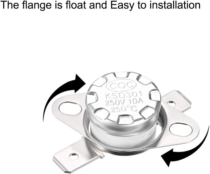 - النوع: KSD301 170 درجة مئوية مفتاح التحكم الحراري 110 فولت/120 فولت/250 فولت 10 أمبير NC (إغلاق عادي)، دبوس 6.3 مم، إعادة ضبط درجة الحرارة: 140 درجة مئوية