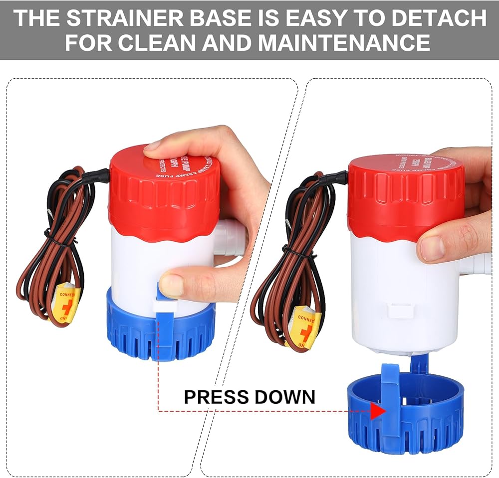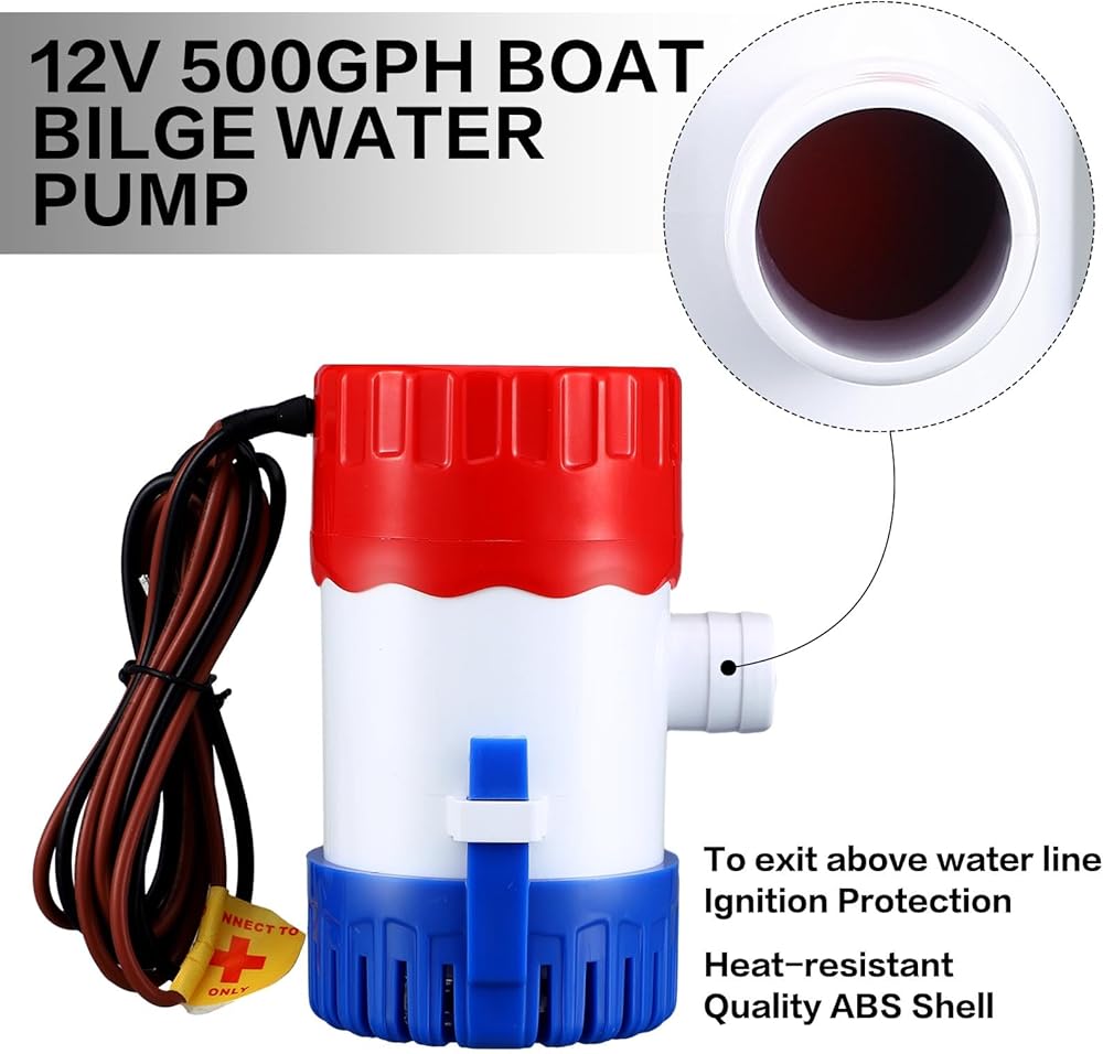 Marine bilge pumps for boats operate at a voltage of 12 V DC and boasts a flow rate of 750 GPH. As such, this pump offers efficient drainage, ensuring bilge water removal.