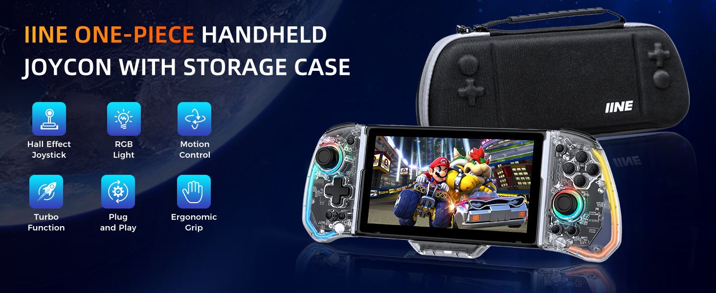 مجموعة وحدة تحكم التبديل IINE للتبديل/OLED، [بدون انجراف] وحدة تحكم Joypad من قطعة واحدة مع عصا تحكم بتأثير القاعة، وحدة تحكم محمولة للتبديل مع حقيبة تخزين مع مستشعر حركة/Turbo/Rumble/زر خلفي