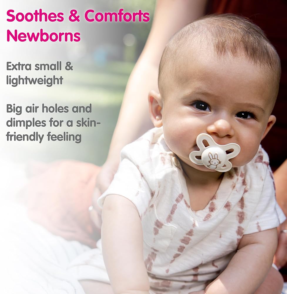 VENTILATED & COMFORTABLE SHIELD: These cute pacifiers for babies have a curved sterilizing shield with openings to keep baby comfortable, prevent moisture build-up, and allow baby's skin to breathe.