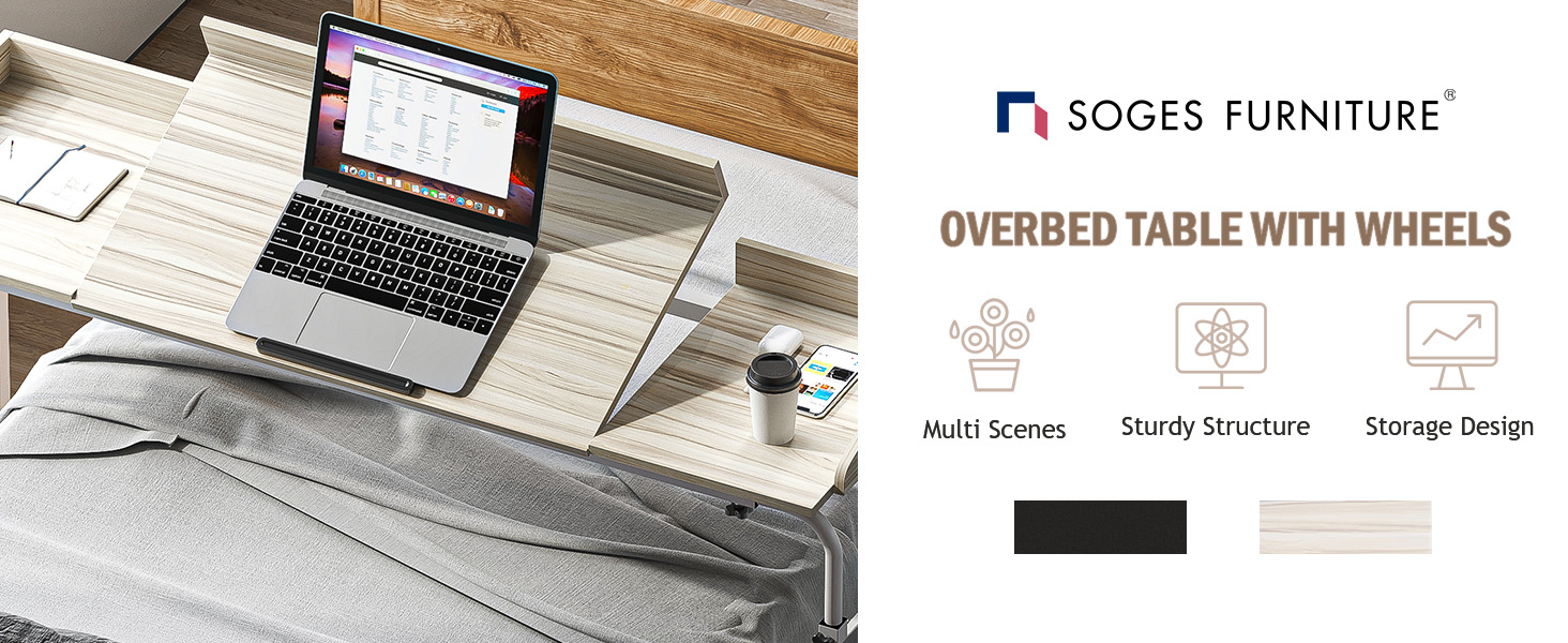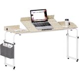 sogesfurniture فوق طاولة السرير بعجلات، طاولة فوق السرير قابلة للتعديل بارتفاع 60 بوصة مع سطح طاولة قابل للإمالة وحقيبة تخزين جانبية، طاولة مستشفى متنقلة فوق السرير للاستخدام المنزلي، خشب القيقب