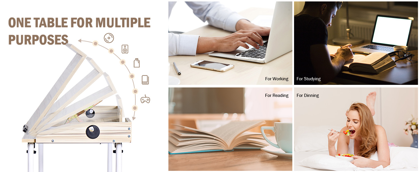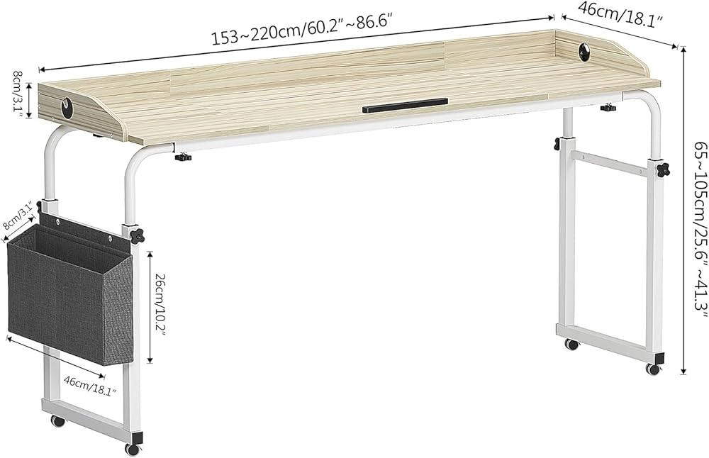 • ✅مساحة سطح واسعة: يوفر سطح الطاولة الكبير مقاس 60 بوصة مساحة واسعة لاستيعاب الكمبيوتر المحمول أو الكتب أو الوجبات أو غيرها من الضروريات. سواء كنت في السرير أو على الأريكة أو على كرسي، فإن هذه الطاولة فوق السرير توفر مساحة ثابتة وواسعة سطح لجميع أنشطتك.
