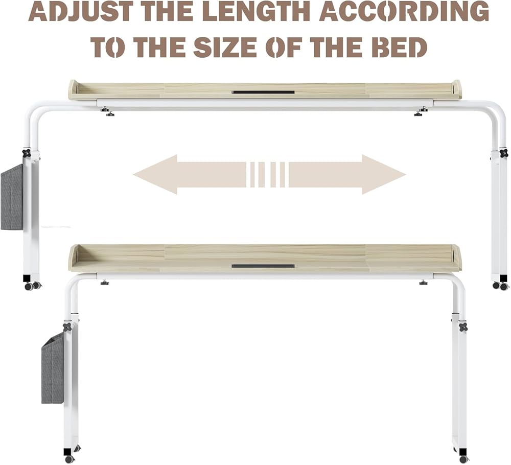 • ✅طاولة فوق السرير مصممة لتوفير الراحة: قياس 60.2 بوصة طول × 86.8 بوصة عرض × 18.1 بوصة ارتفاع؛ الارتفاع قابل للتعديل من 25.6 إلى 41.3 بوصة. مع 18 مستوى لتعديل الارتفاع، يمكنك بسهولة العثور على الوضع المريح المثالي لأنشطتك، سواء كانت القراءة أو العمل على جهاز كمبيوتر محمول أو تناول وجبات الطعام بالإضافة إلى ذلك، يمكن تعديل سطح الطاولة القابل للإمالة إلى زوايا مختلفة، مما يضمن إمكانية العثور على الإعداد الأمثل لاحتياجاتك. يمكن استخدام عرض المكتب بالكامل على أي مرتبة بحجم، من الحجم المزدوج إلى الحجم الكبير .