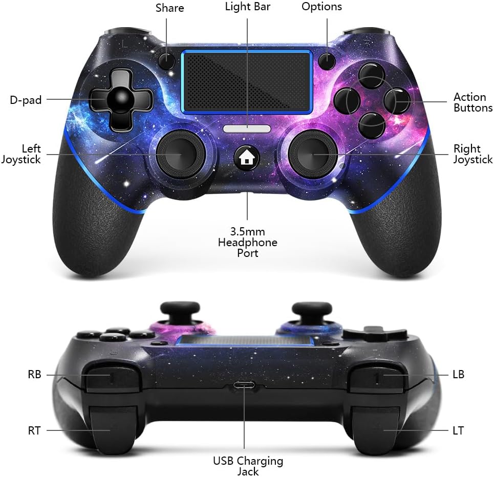 🎮【ميزات الوظيفة】عصي تناظرية مصقولة بزاوية 360 درجة بدون منطقة ميتة، توفر لوحة اللمس الجديدة الموجودة على وجه وحدة التحكم في الألعاب تحكمًا دقيقًا للاعبين. وحدة التحكم التي تحتوي على مستشعر جيروسكوبي مدمج بستة محاور تتميز باهتزاز محرك مزدوج، وتصميم ممتاز لتأثير الصدمات المزدوجة يجعل الإحساس باللمس أكثر حساسية. الأزرار والمشغلات المحسنة، والمقابض ذات التصميم المريح غير القابلة للانزلاق، والتي توفر لك تجربة لعب رائعة.