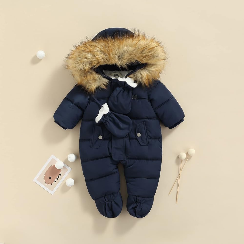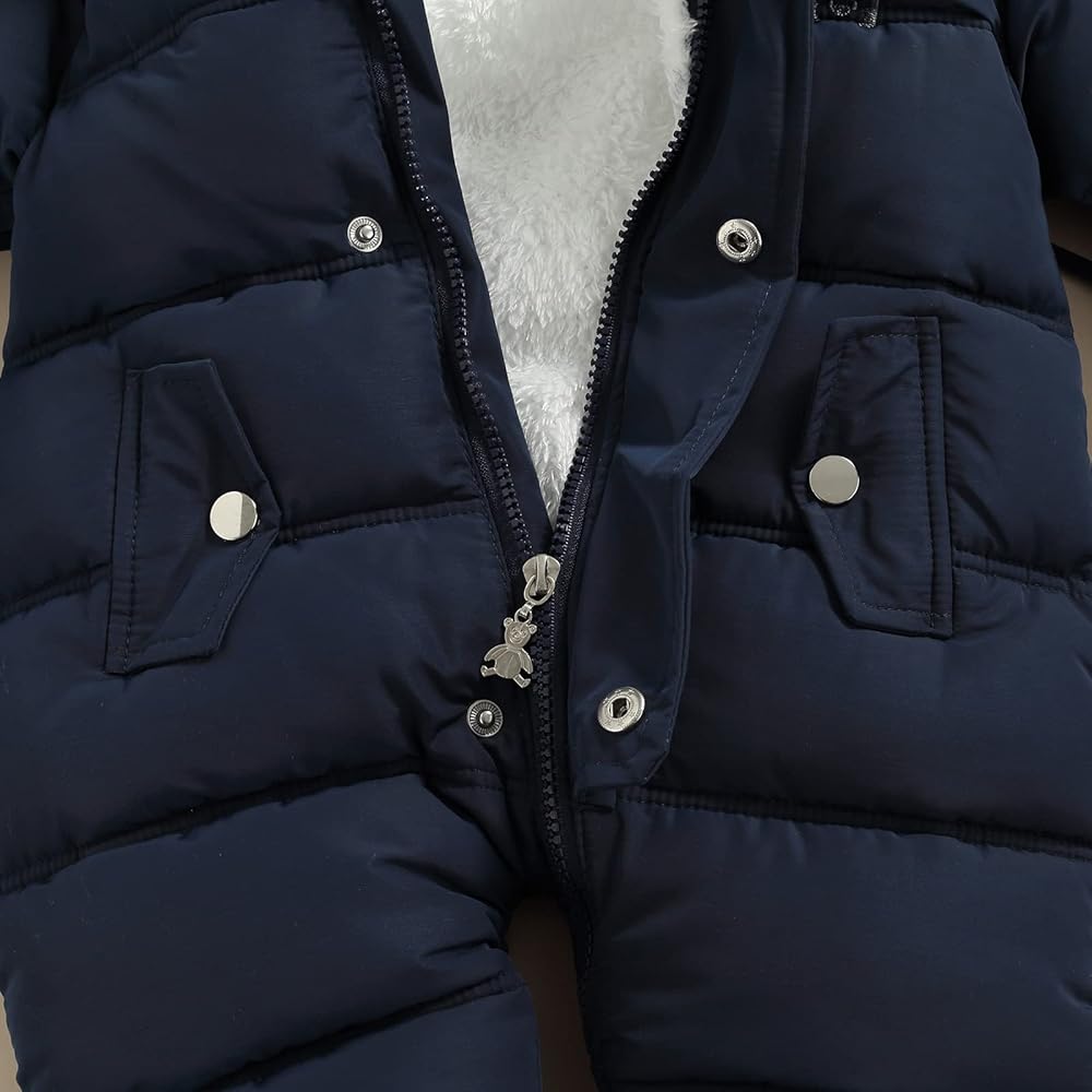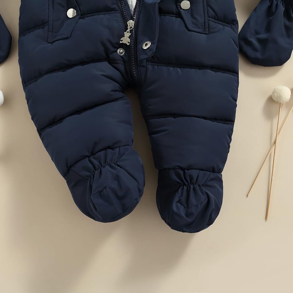 • Unique Design---Baby winter snowsuit.Baby warm jumpsuit romper,baby winter down coat,baby hoodied jumpsuit,baby winter footies snowsuit,baby one piece winter romper with snow gloves set.Zipper closure is easy put on or off.Baby boy jumpsuit,toddler baby girl footie,baby boy warm winter outfits,baby girl overcoat,newborn baby girl snowsuit,infant baby boy one piece romper,toddler baby girl winter clothes,baby girl onesies.
