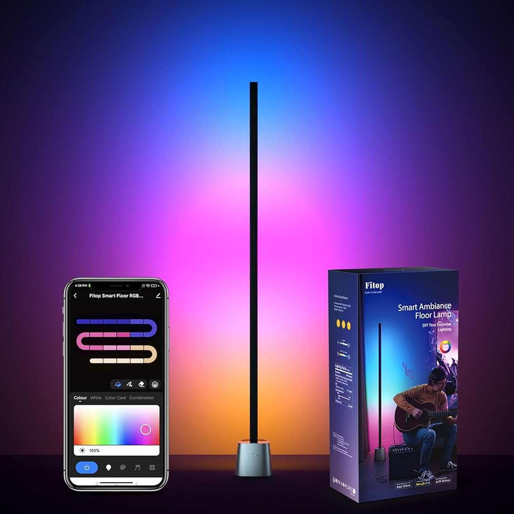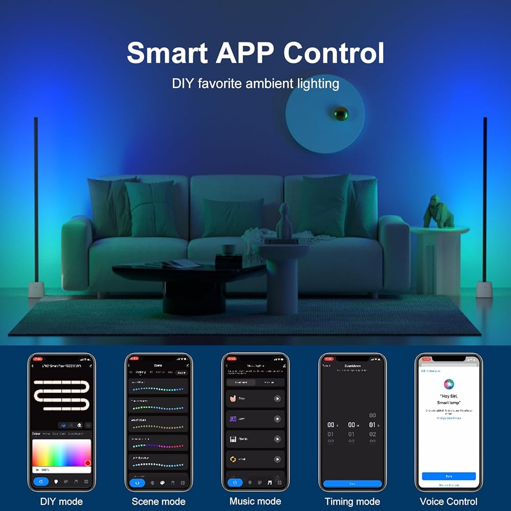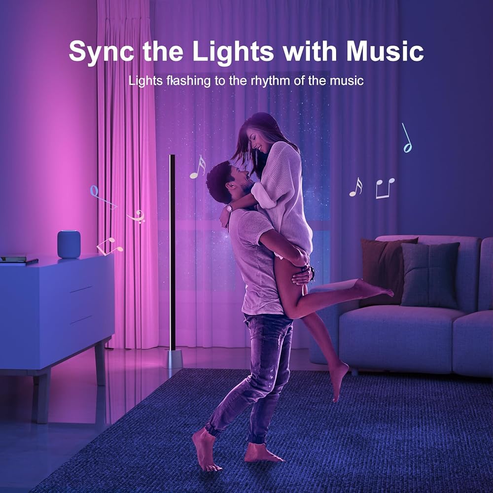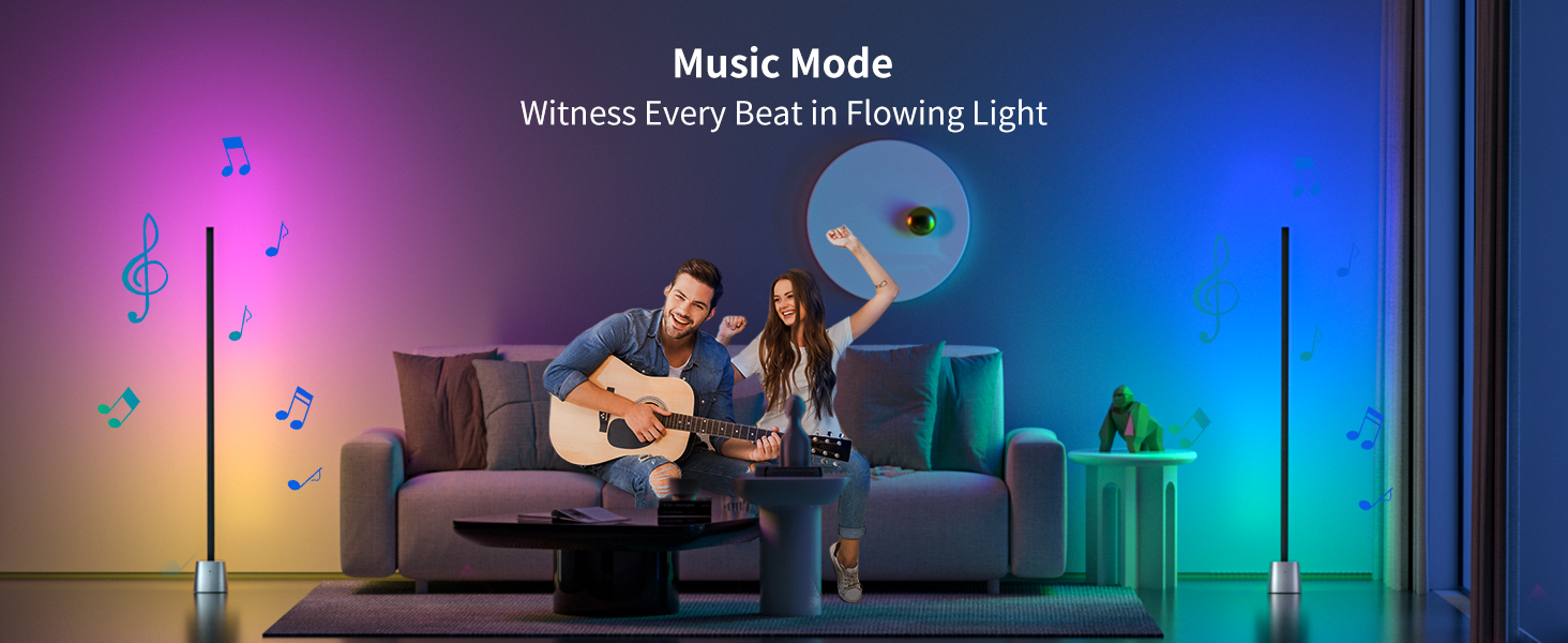 【مزامنة الموسيقى】عزز تجربتك الغامرة من خلال مزامنة المصباح الأرضي LED مع إيقاع الموسيقى أو الفيلم أو اللعبة المفضلة لديك. بفضل الميكروفون الحساس المدمج ووضع الموسيقى، يتفاعل المصباح الأرضي مع الصوت ويتغير مع الإيقاع.