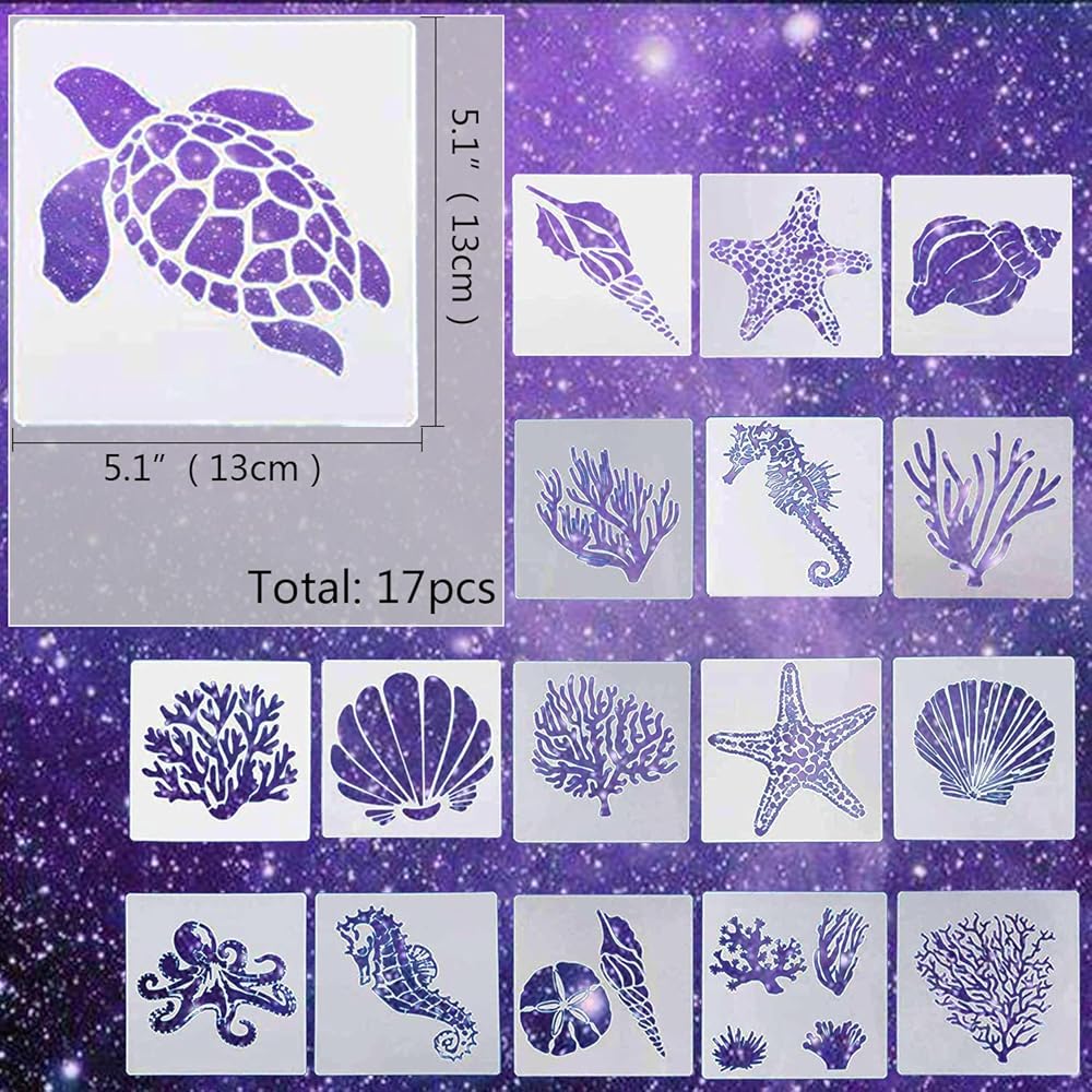 17 قطعة من استنسل مخلوقات البحر والمحيط، قوالب حيوانات الحياة البحرية للأطفال قابلة لإعادة الاستخدام، استنسل لرش الطلاء، طلاء إسفنجي، رسم تلوين، لوحة البخاخة (5.1 × 5.1 بوصة)