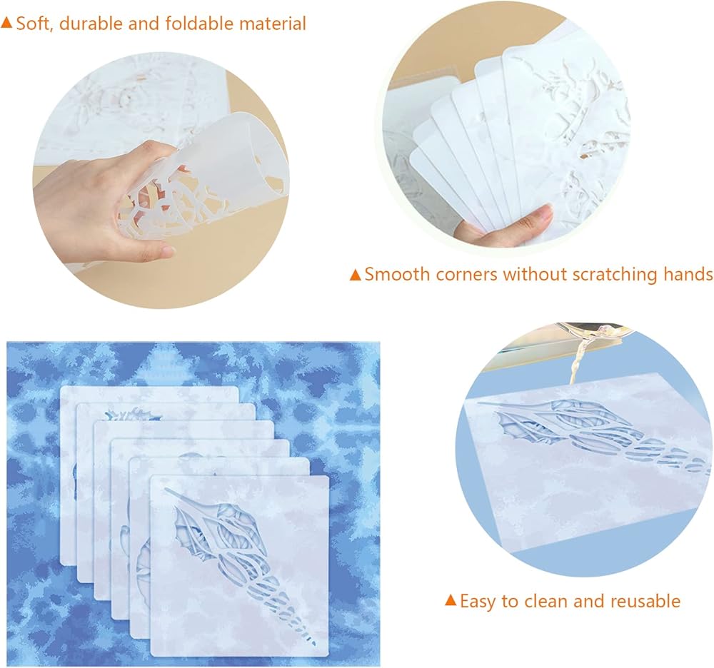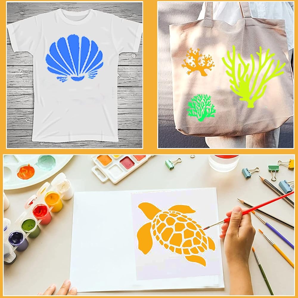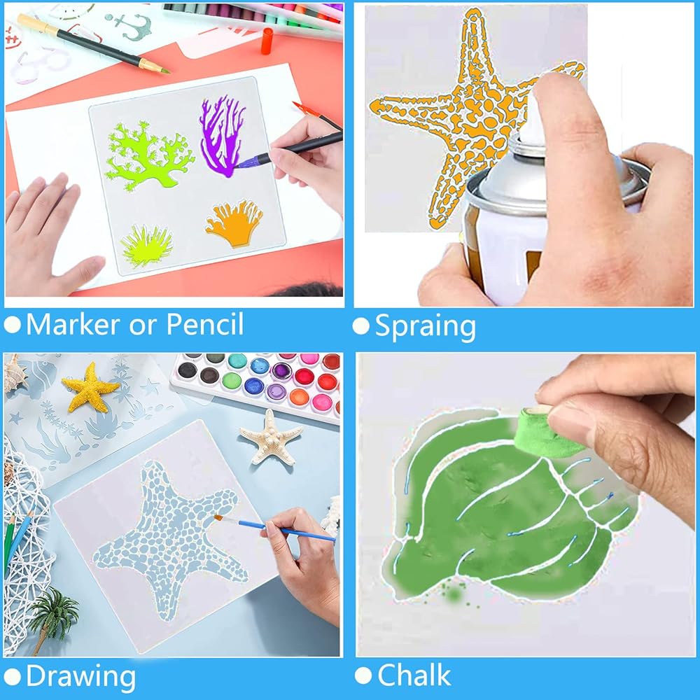 17 × استنسل مخلوقات البحر والمحيط في العبوة. كمية كافية واختيار غني. يبلغ مقاس كل استنسل حوالي 5.1 × 5.1 بوصة