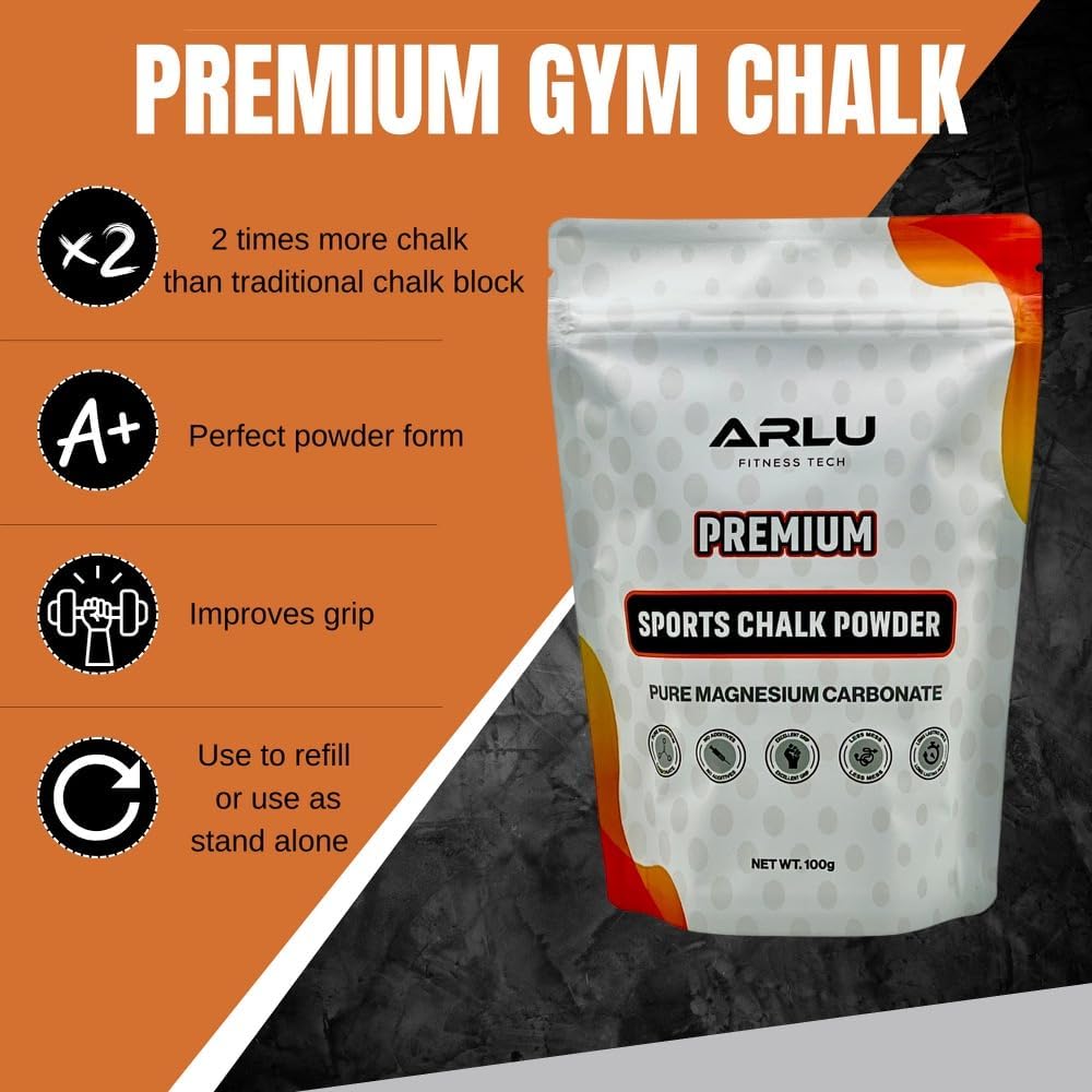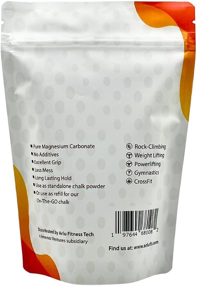 Arlu Fitness Tech's Premium Sports Chalk Powder, the ultimate solution for athletes seeking a convenient, ready-to-use chalk powder that delivers optimal grip and performance. Specially crafted with the highest quality magnesium carbonate, this premium chalk powder ensures you always have the perfect consistency for your athletic pursuits. Whether you're an avid rock climber or engaged in various sports that demand a reliable grip, our Premium Sports Chalk Powder is designed to meet your needs. No more hassle or mess with grinding chalk blocks or dealing with inconsistent powder textures. Our chalk powder comes in its ideal form, finely ground and ready for immediate use. For rock climbers, our Premium Sports Chalk Powder is the perfect refill for your chalk bag. With a simple and mess-free application, you can focus entirely on conquering the crux without any grip concerns. You'll appreciate the consistent texture that provides just the right amount of friction for maximum performance. Our Premium sports chalk powder is also the exact same high quality chalk used in our "On-The-Go" Chalk Bottle. Pick one of these up if you're looking to refill it!