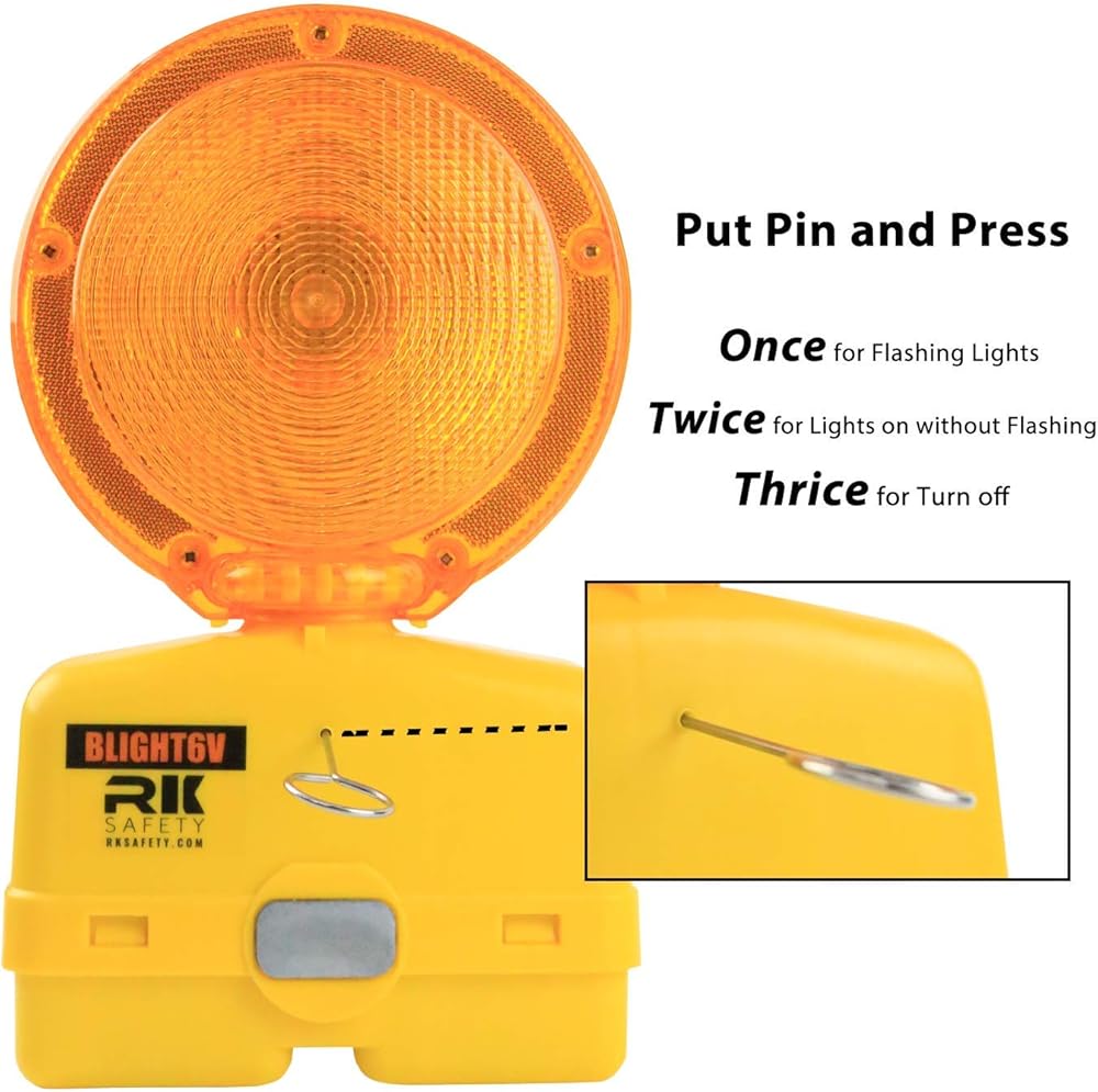 Troy Safety BLIGHT-ST Solar Rechargeable Barricade Amber LED Warning Lights | Traffic signal Flashing 2-Sided Visibility, Type A/C, 3-Way Operation Switch | W/Switch Pin and Bolt