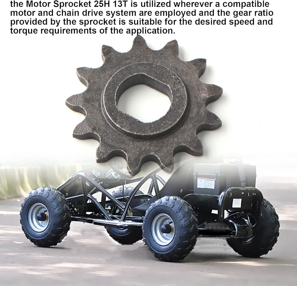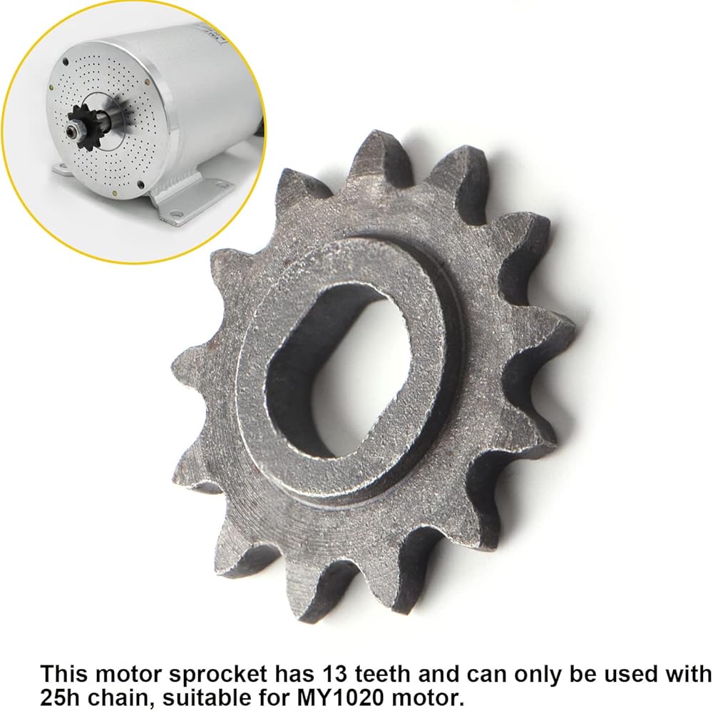 • 【Compatiblity Model】: perfect replacement for old or broken sprockets, direct mount, meets strict quality control standards, reliable in use.suitable for Electric Scooters, Electric Bicycles, Electric Go-Karts,Various small electric vehicles, mini bikes, electric ATVs, or electric dirt bikes, may incorporate the Motor Sprocket 25H 13T in their power transmission systems.