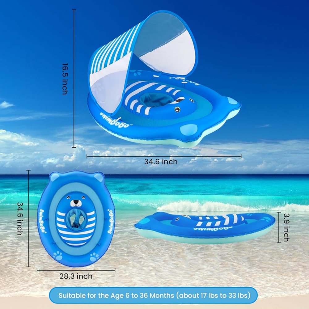 الدب الطفل الربيع تعويم مع المظلة، حمام سباحة الطفل يطفو مع المظلة، يطفو حمام السباحة للأطفال الصغار 1-3 مع مظلة الشمس UPF، عوامات السباحة الرضع مع مقعد أمان قابل للتعديل لا تقلب للأعمار من 6 إلى 36 شهرًا