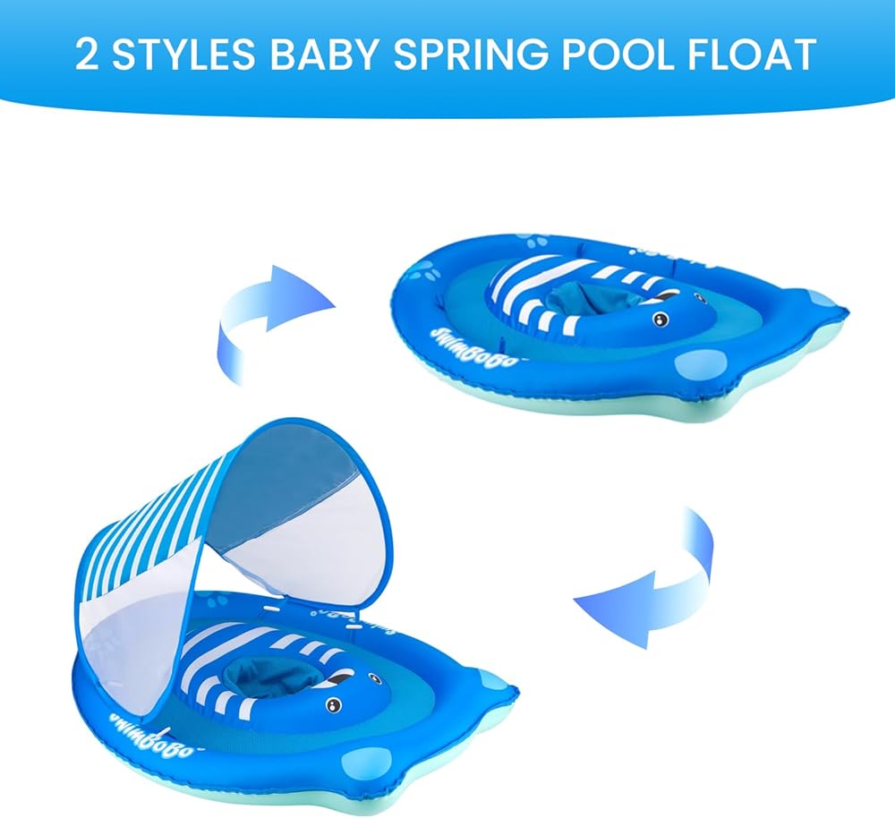 • ③ عوامة زنبركية للأطفال الصغار مع مظلة حماية من الشمس قابلة للإزالة: تأتي عوامات الأطفال الخاصة بنا لحمام السباحة مع مظلة شمسية قابلة للإزالة بعامل حماية من الأشعة فوق البنفسجية 50+ لحماية بشرة الطفل بعيدًا عن أشعة الشمس، والاستمتاع بوقت الصيف في أي وقت وفي أي مكان.