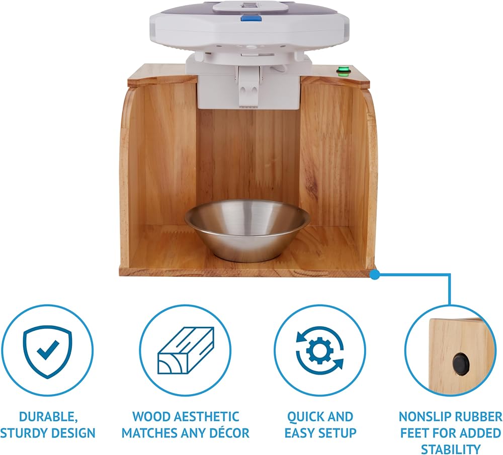 قلاب موزع حبوب لايف فاين، تشغيل بلمسة واحدة، توزيع حبوب الدواء تلقائيًا، قاعدة خشبية أنيقة مع كوب طبي آمن للغسل في غسالة الأطباق، متوافق مع لايف فاين وغيرها من النماذج الرائدة