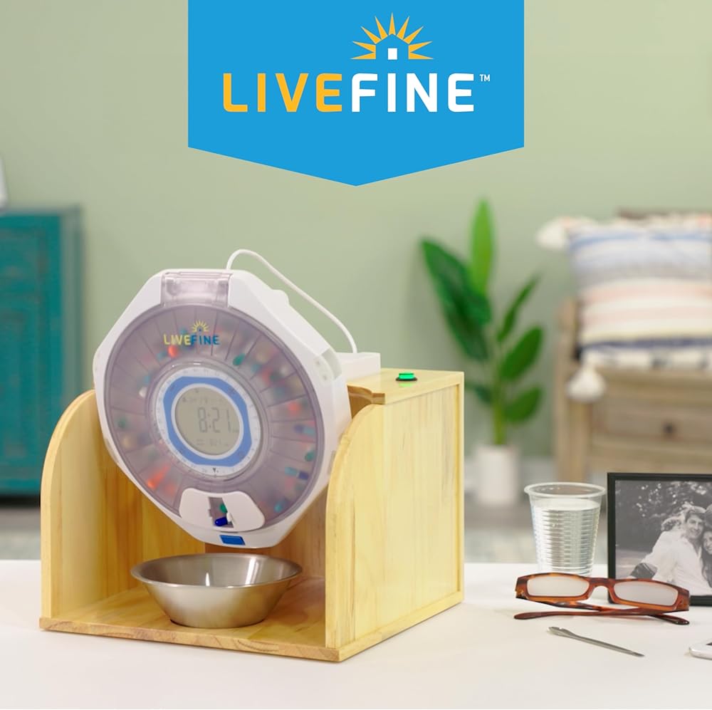 الاستقلال بلمسة زر | تحكم في صحتك باستخدام قلاب موزع حبوب لايف فاين | فقط اضغط وانطلق - لا مزيد من الجرعات المفقودة؛ لا توجد خطوات معقدة | قم بإقرانه مع موزع حبوب الدواء الأوتوماتيكي LiveFine لقفل الأجزاء، وتذكيرات سهلة الضبط، وميزات يمكن الوصول إليها لتعزيز ثقتك بنفسك وتعزيز القدرة على الحركة