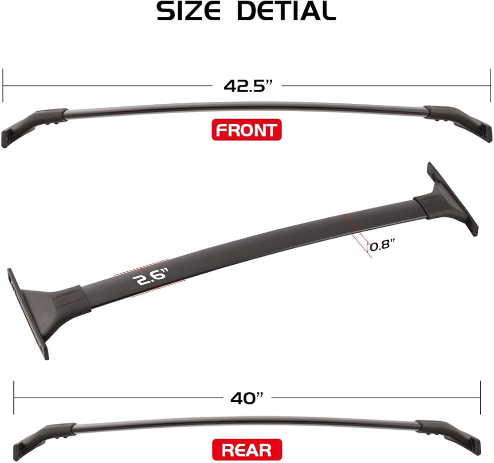【Easy to Install】Mount directly to the roof rails to help carry additional cargo.Includes mounting screws that easily attach to mounting points on the roof rail.A great accessory for your vehicle.It can fix most roof equipment on the market, roof bags, roof boxes, bicycles, surfboards, kayaks, canoes, sporting goods, ladders, suitcases, etc.