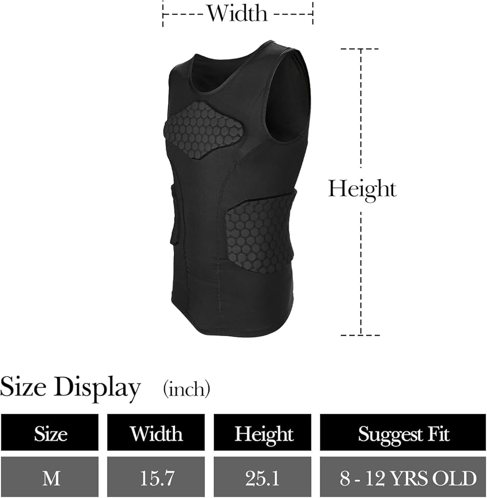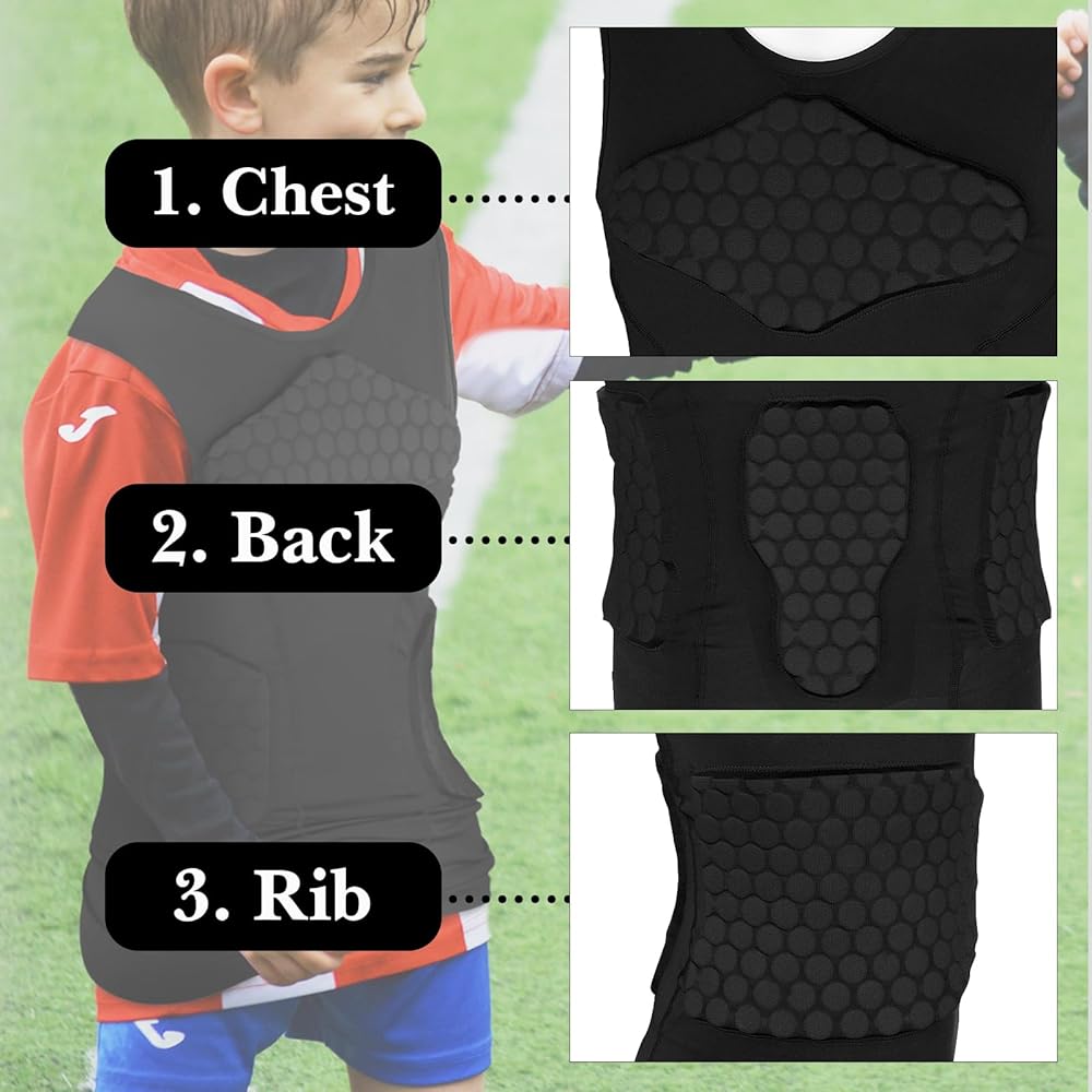 سترة Linkidea للشباب لكرة القدم، سترة صدرية مبطنة واقية بدون أكمام للرياضات التلامسية، سترة حارس مرمى كرة القدم مع حماية الجذع والضلع، خفيفة الوزن، غير مقيدة، للأعمار من 8 إلى 12 عامًا