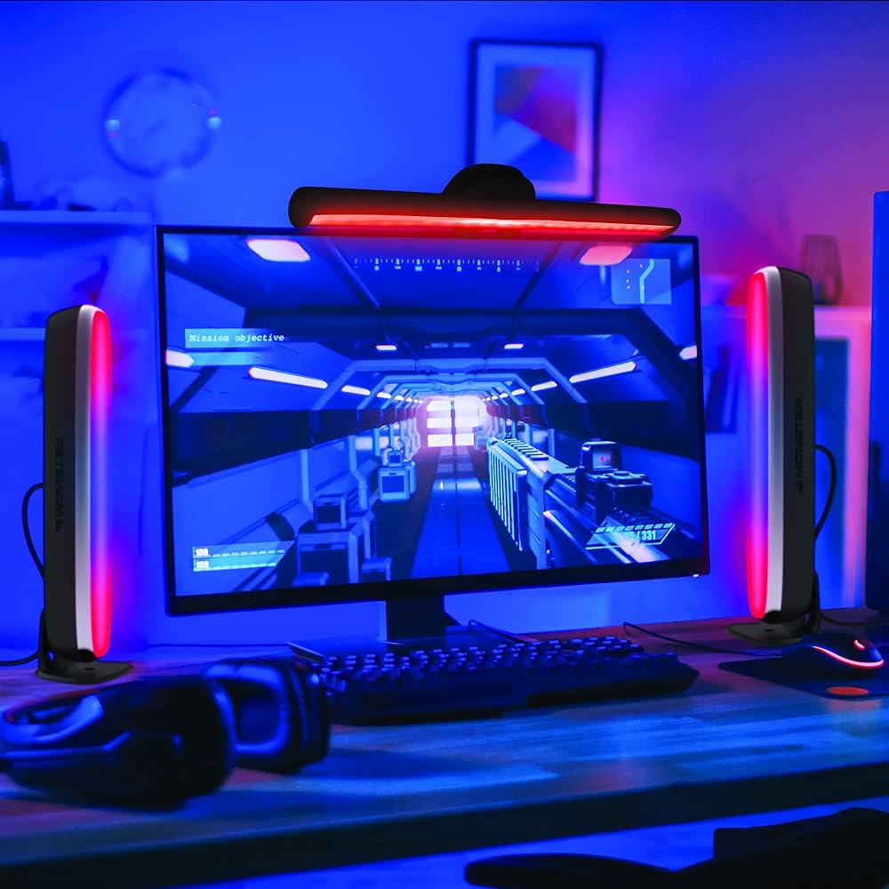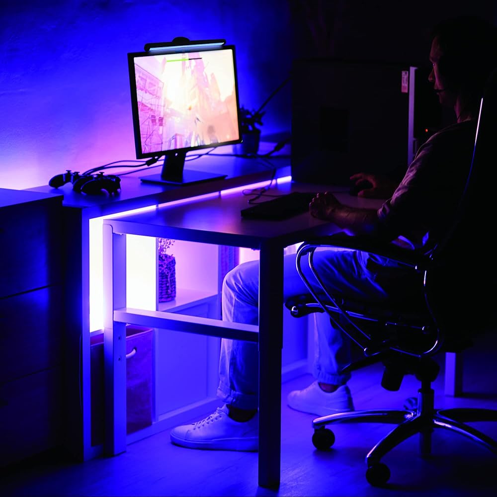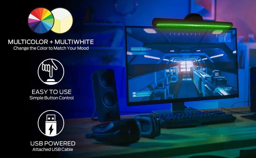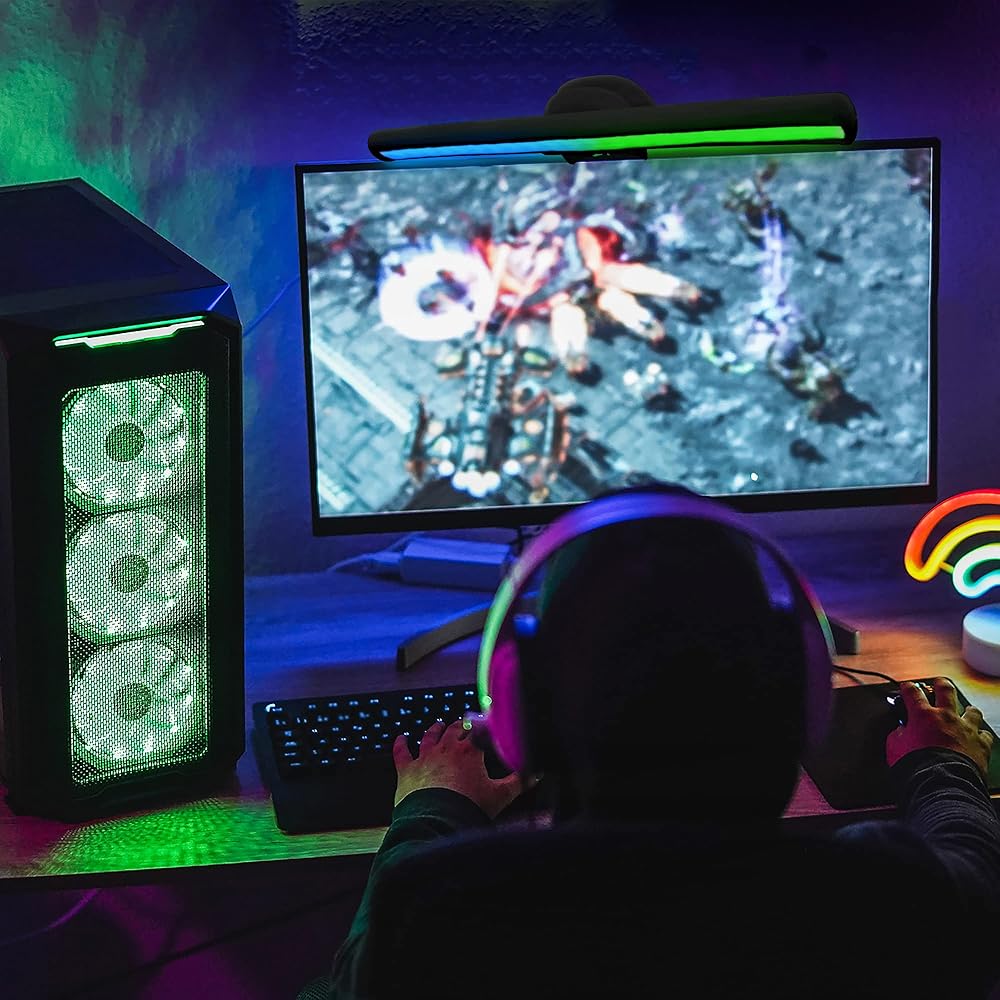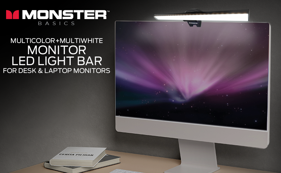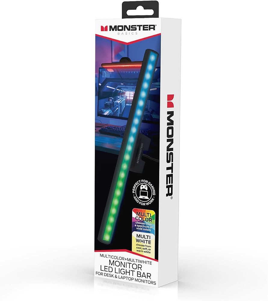 شريط إضاءة LED متعدد الألوان من مونستر، يعمل مع أجهزة الكمبيوتر المحمول/المكتبي، زر بسيط للطاقة، أوضاع اللون/السطوع، يقلل الوهج من الشاشة، تركيب سريع بنفسك مع مشبك تثبيت سهل