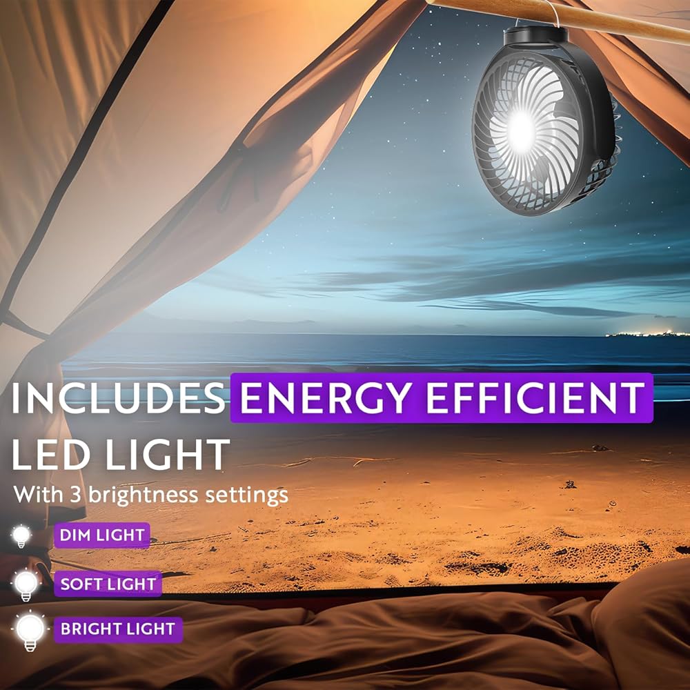 خفيفة الوزن وقوية - هذه المروحة المحمولة ذات الضوء هي المروحة المثالية للسرير والسيارات وممارسة الرياضة. يمكن استخدامها كمروحة محمولة للأطفال أو كمروحة شخصية محمولة باليد. الرأس قابل للفصل ويمكن تعليقه لاستخدامه في الخيام في رحلات التخييم
