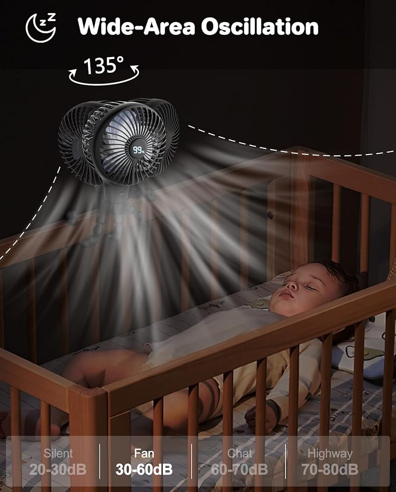 • 【تذبذب واسع النطاق 135 درجة】- اضغط على زر المفتاح لمدة 3 ثوانٍ لتغطية تذبذب 45 درجة تذبذب بعرض 135 درجة، مما يمنع النسيم البارد من النفخ مباشرة على رأس طفلك لفترات طويلة، مما يقلل من خطر إصابته بالبرد.
