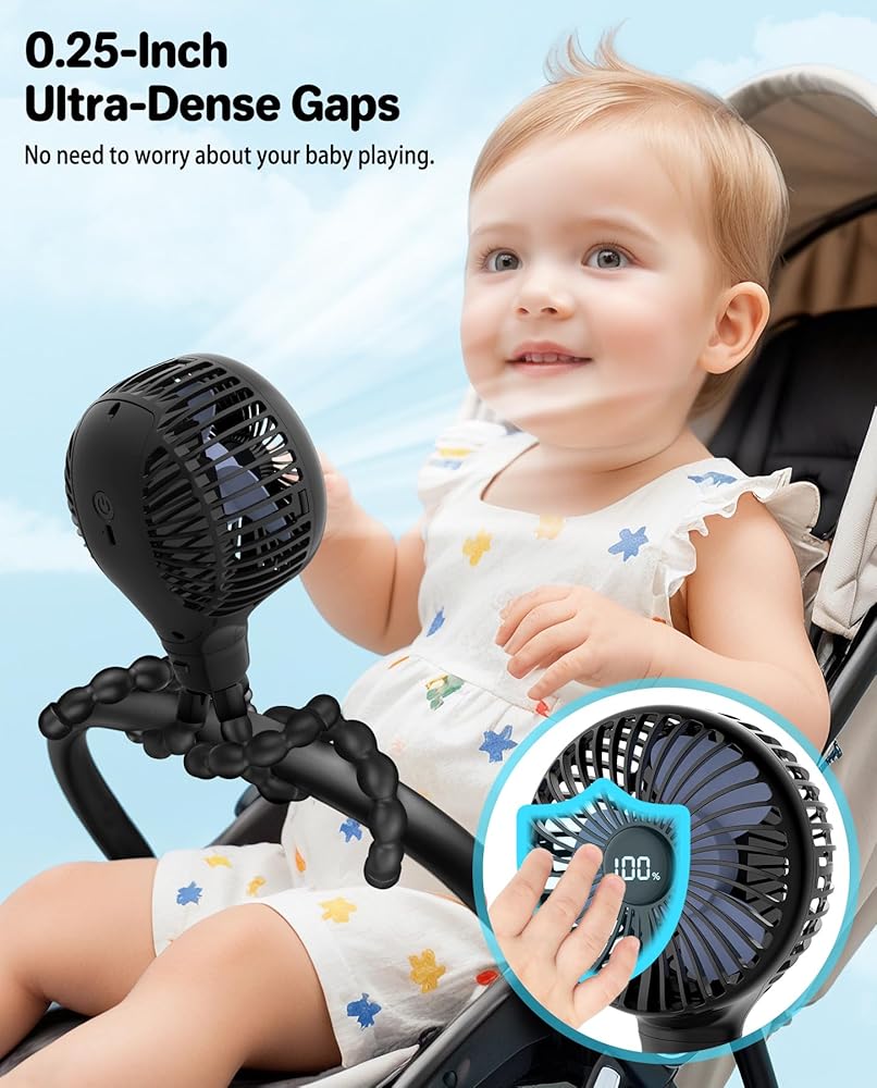 • 【فجوات فائقة الكثافة】- مروحة الطفل هادئة للغاية، فجوات فائقة الكثافة مقاس 0.25 بوصة، اختبار قسم العمر الكامل 0-10 سنوات، وحماية أمامية وخلفية، لا تقلق بشأن التصاق أصابع طفلك بالمروحة و إصابة طفلك عن طريق الخطأ.