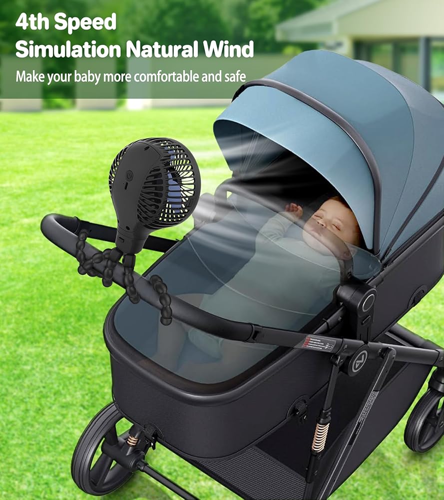 • 【4 سرعات قابلة للتعديل】- يمكن لمروحة عربة الأطفال الاختيار من بين أوضاع الرياح المنخفضة والمتوسطة والعالية والطبيعية. السرعة الرابعة تحاكي الرياح الطبيعية، والجري والتوقف بشكل دوري كل 3 ثوانٍ، مما يؤدي إلى نسيم جيد، وهو أكثر راحة للأطفال.