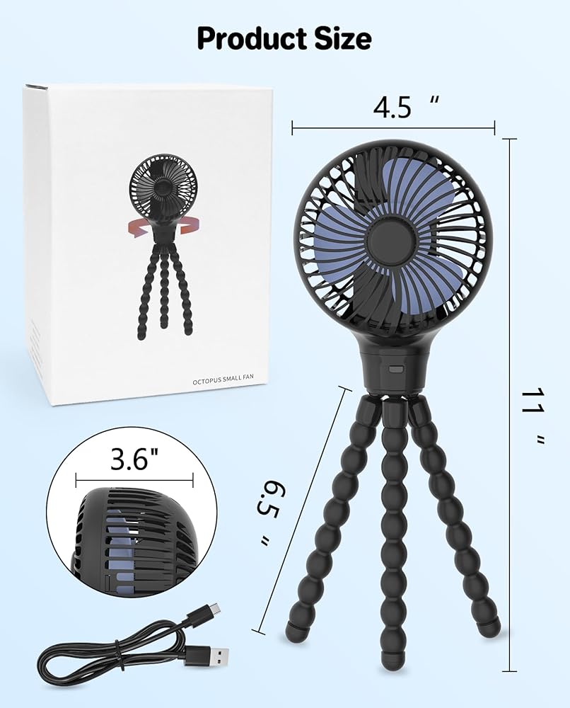 • 【حامل ثلاثي مرن وقوي】- الحامل ثلاثي القوائم مصنوع من سبيكة معدنية قوية ومغلف بطبقة سميكة من السيليكون الصالح للطعام، ولن يهتز عند تثبيته على عربة الأطفال. وجعلها مريحة بشكل لا يصدق للشحن. ما عليك سوى إزالة رأس المروحة دون الحاجة إلى إعادة التثبيت.