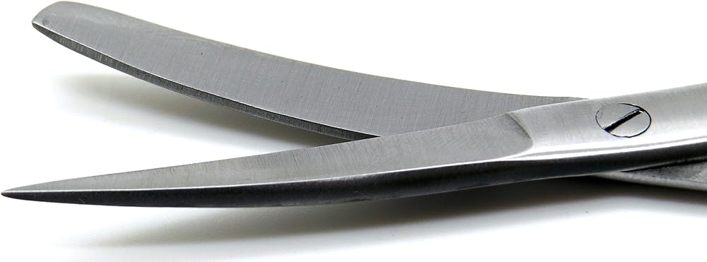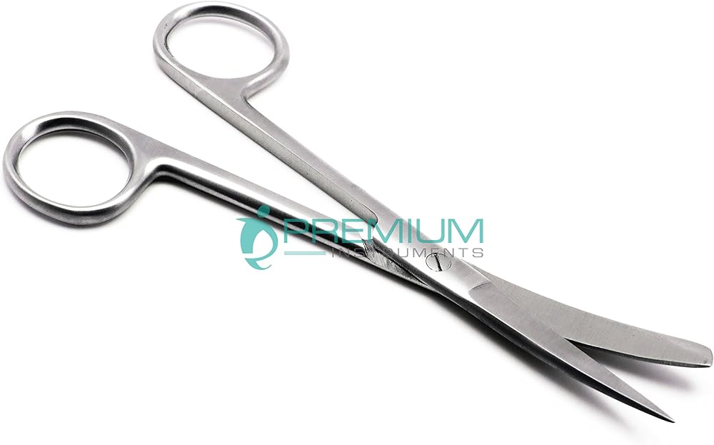 Operating scissors Standard Curved 5.5”/14cm Sharp/Blunt: Curved-bladed scissors are designed for cutting body tissues near the surface of a wound. Curved-bladed Mayo scissors allow deeper penetration into the wound than the type with straight blades. The scissors is made of stainless steel and blades are curved. Dissecting scissors have several uses in the operating room when used by medical professionals. They aid in making incisions, removing skin and flaps of tissue, and removing stitches. Surgical scissors designed for cutting delicate tissue. The scissors come in 5.5 inch of length. They are constructed of stainless steel. Blades are curved. The blade tips are Sharp/Blunt. This is most common in organ operations. Excellent for cutting suture, tissue, and other general uses in the Operation.