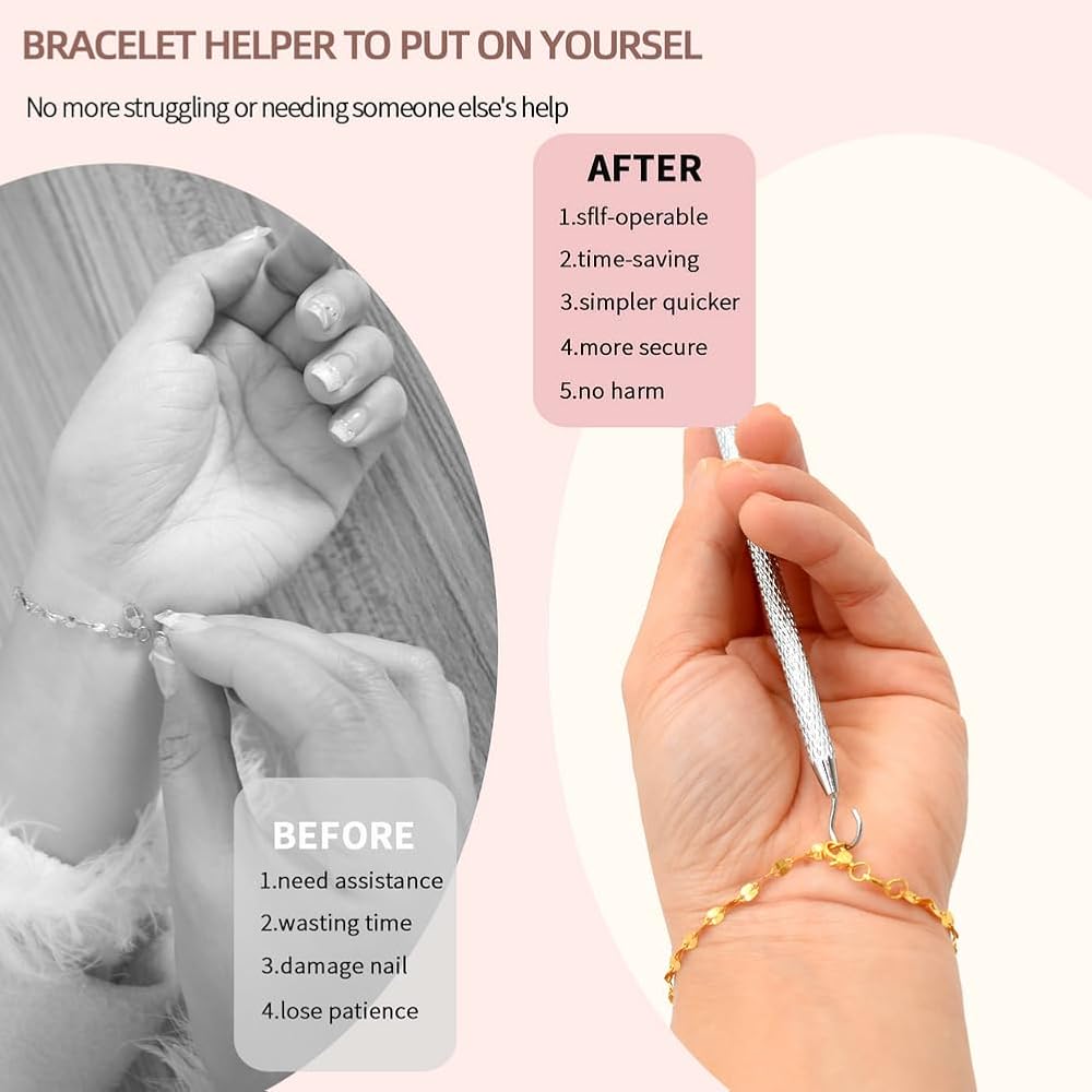 مساعدة سوار بدون جهد: قل وداعًا للصراعات والاعتماد على الآخرين. يمكّنك مساعد سوار المجوهرات المصنوع لدينا من ارتداء الأساور دون عناء في ثلاث خطوات بسيطة. قم بتأمين طرف السوار، وأمسك الأداة المساعدة للمجوهرات، ثم اربط مشبك جراد البحر بيدك الحرة. حرر أساورك من صندوق المجوهرات بسهولة، لتظهر تألقها. أداة مساعد سوار سهلة الاستخدام وعملية.