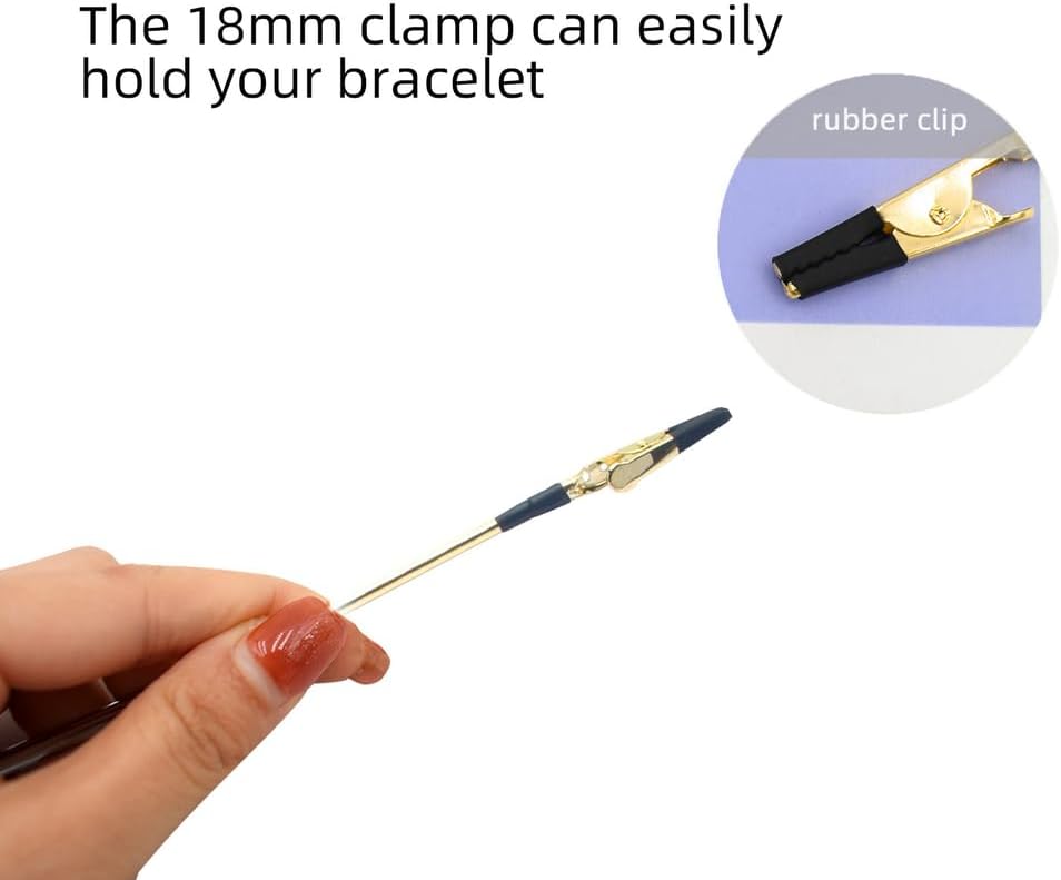 الحماية المثالية: أعط الأولوية للعناية بأساورك من خلال تصميمنا المدروس. إن مشبك التمساح الخاص بأداة مساعد السوار الخاصة بنا محمي بغطاء مطاطي واقٍ، مما يضمن سلامة إكسسواراتك الثمينة ويديك. ويضمن الخطاف الدائري الأملس المصقول بدقة الجمال والسلامة، ويحافظ على الحالة الأصلية لإكسسواراتك القيمة.
