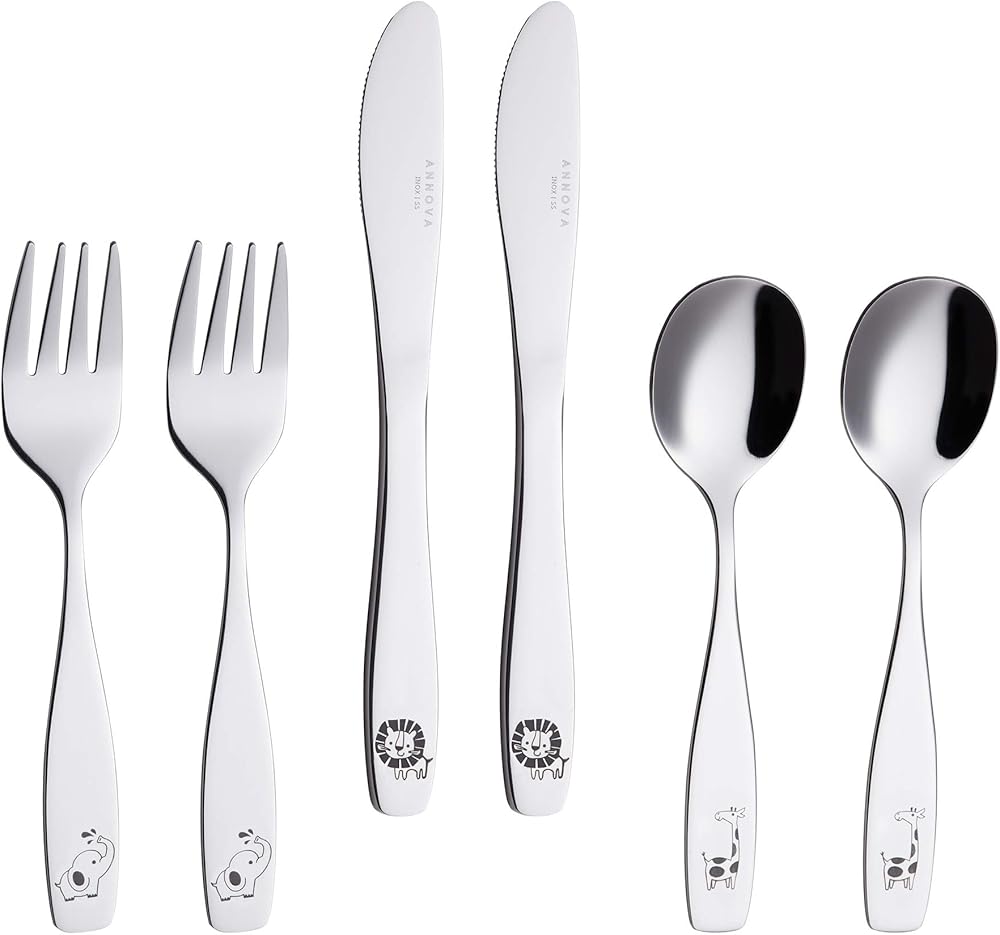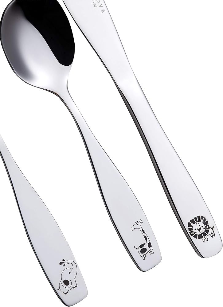 • طقم أدوات مائدة / أدوات مائدة للأطفال من الفولاذ المقاوم للصدأ من أنوفا 6 قطع. لقد قمنا بدعوة الحيوانات البرية لتمثيل مجموعة أدوات المائدة هذه، بما في ذلك الأسد ملك السفاري، والفيل الذكي ذو قوة الذاكرة الفائقة، والزرافة الأطول.
