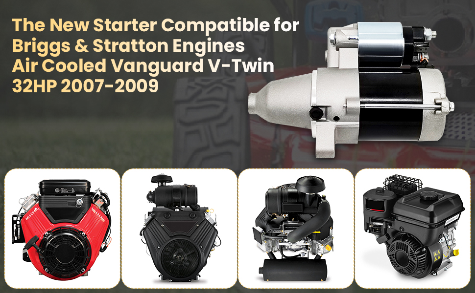 【مركبة متوافقة 】يتوافق محرك التشغيل الكهربائي هذا مع محركات Briggs & Stratton المبردة بالهواء v-twin، 32HP 2007-2009، لنماذج المحركات مثل: 541777، 543777، 613777، 61E877، 61E977