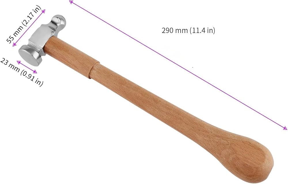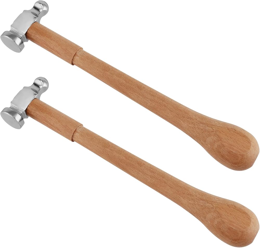 2 قطعة مطرقة مطاردة بمقبض خشبي، مطرقة أدوات صنع المجوهرات مقاس 11.4 بوصة، مطرقة معدنية لصنع المجوهرات